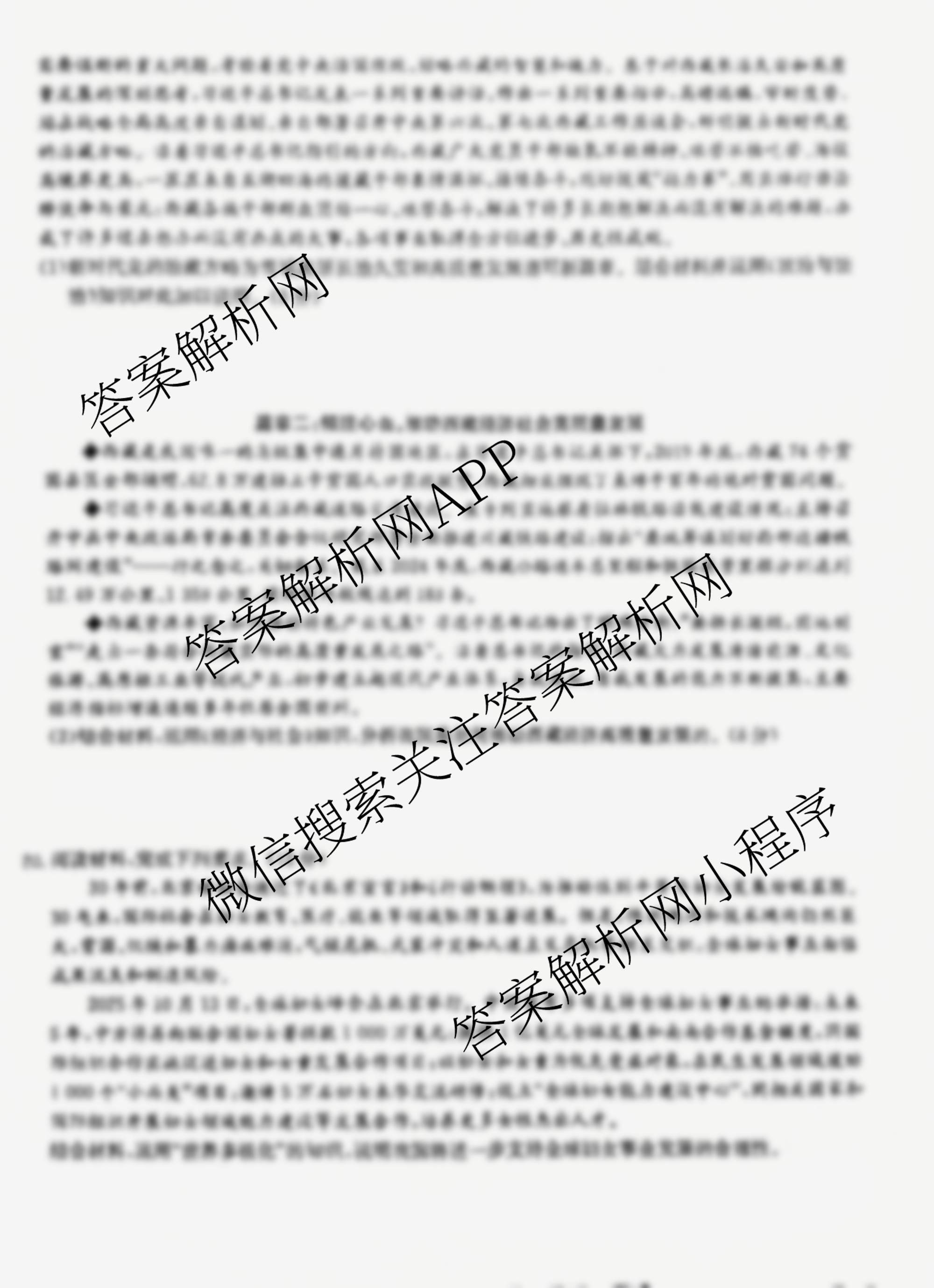 - (九师联盟)·2026届[高三]第3次质量检测(10月质量检测巩固卷)(G)(11.6)政治(W-G)答案