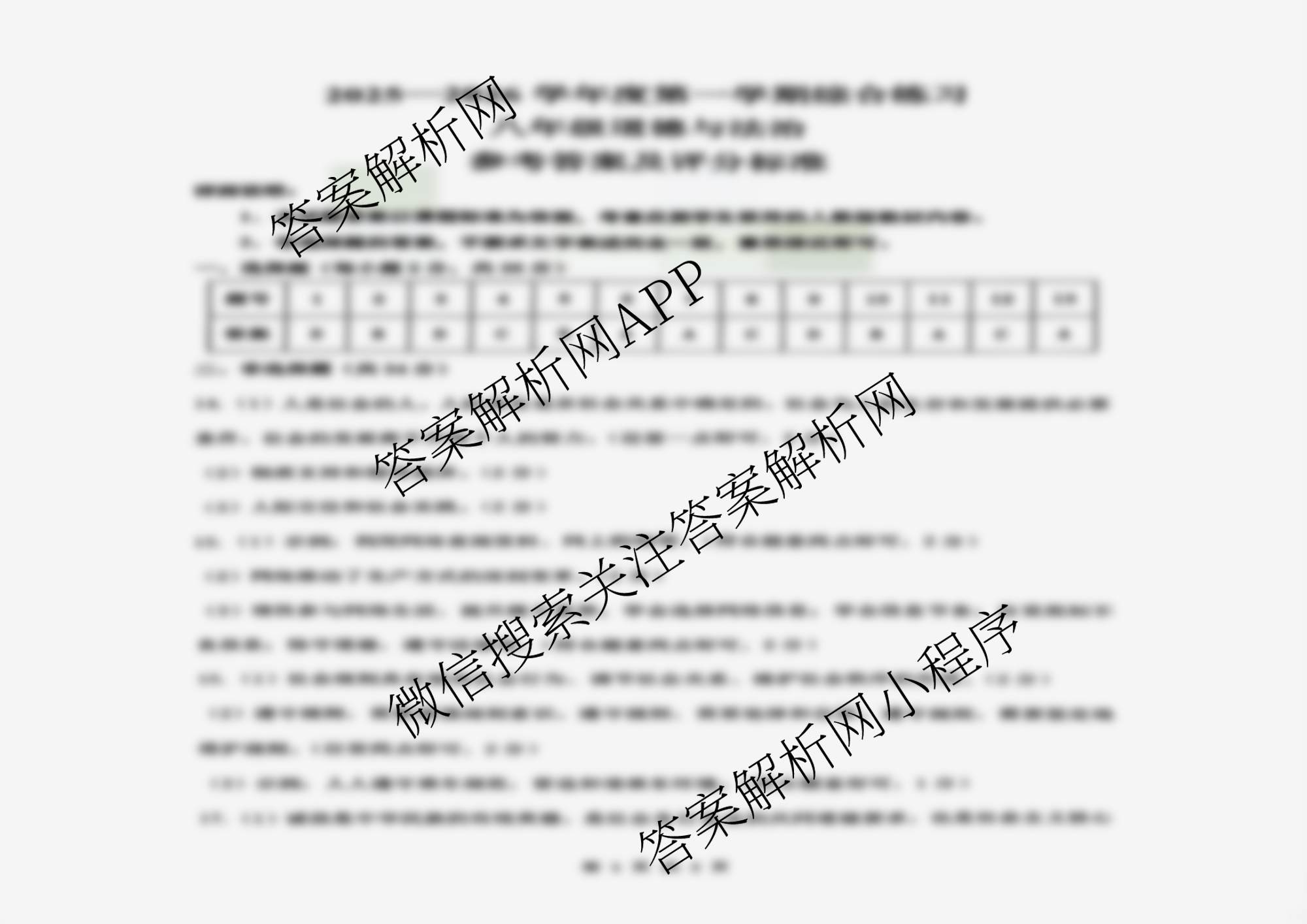 - 2025-2026吉林省学年度第一学期综合练习(八年级)(两个点)生物答案