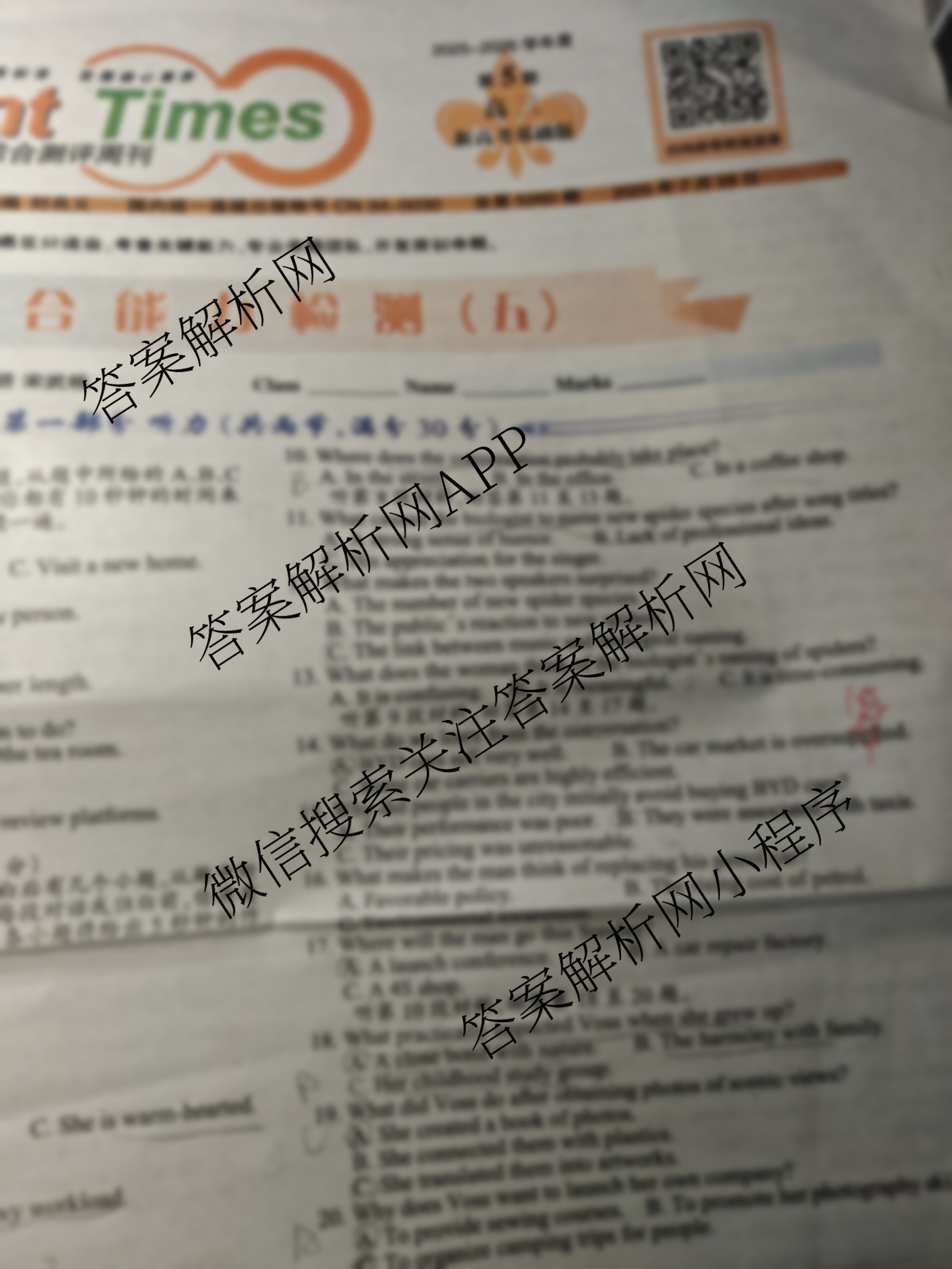 2025-2026学年上学期 双语学习报综合测评周刊 高三 新高考基础版第4期答案