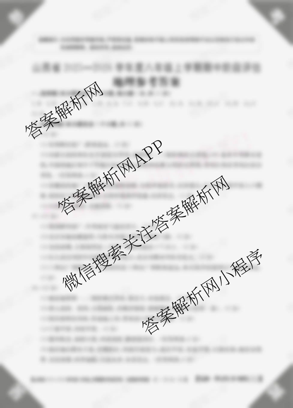 - (八年级)山西省2025-2026学年度上学期期中阶段评估[PGZXDSHX(二)]地理(R)答案