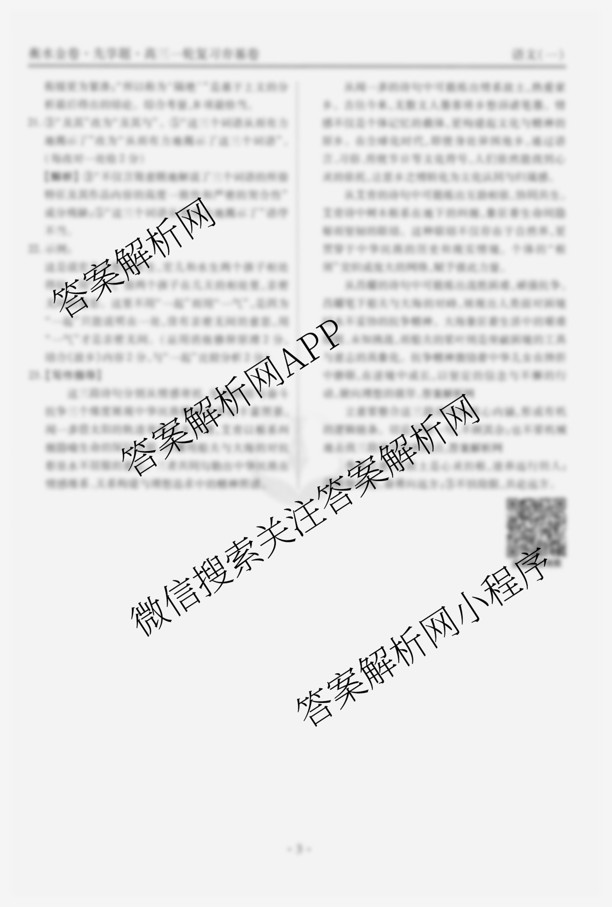 - [高三][衡水金卷先享题]夯基卷 2026年普通高等学校招生全国统一考试模拟 语文(一)1答案
