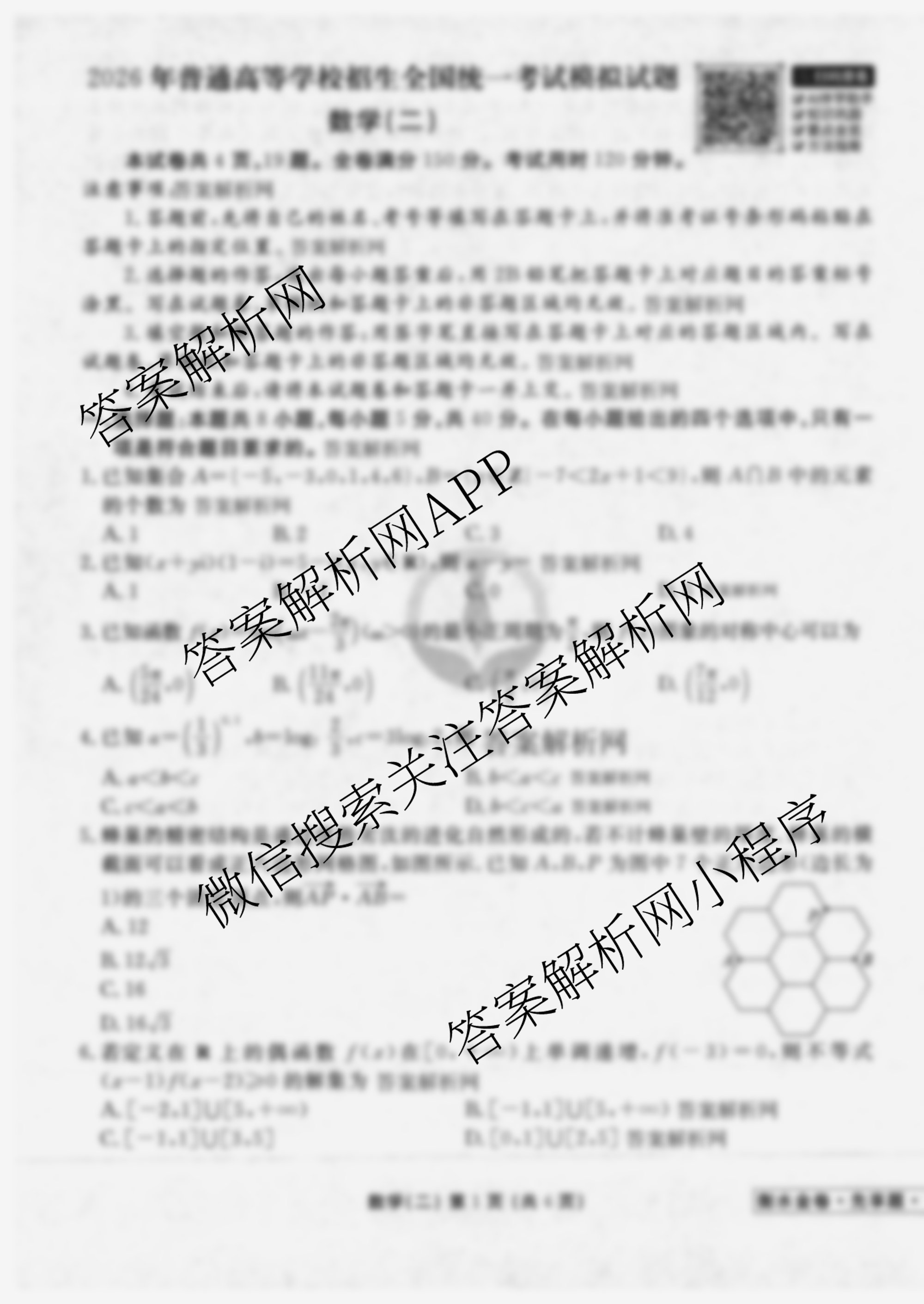 - [高三](衡水金卷先享题)夯基卷 2026年普通高等学校招生全国统一考试模拟 数学(B)(二)2答案