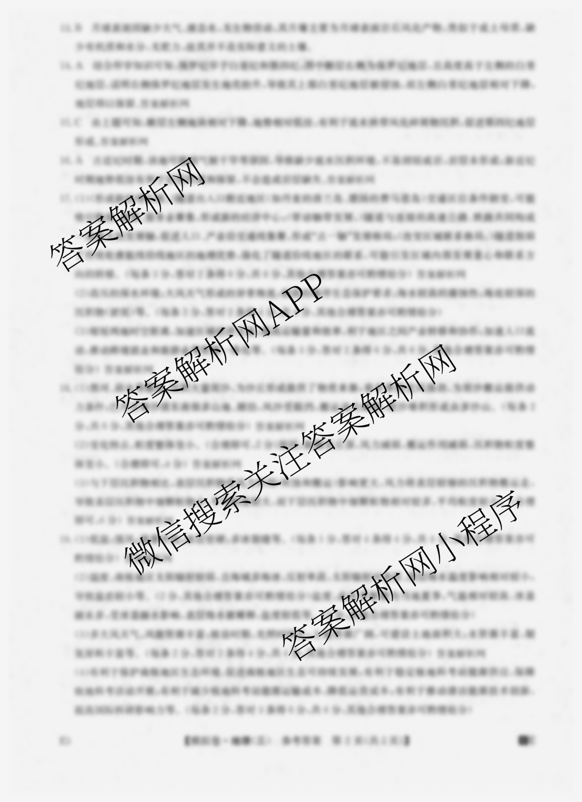 - (高三)2026年普通高中学业水平选择性考试仿真模拟卷(三)3地理(安徽)答案