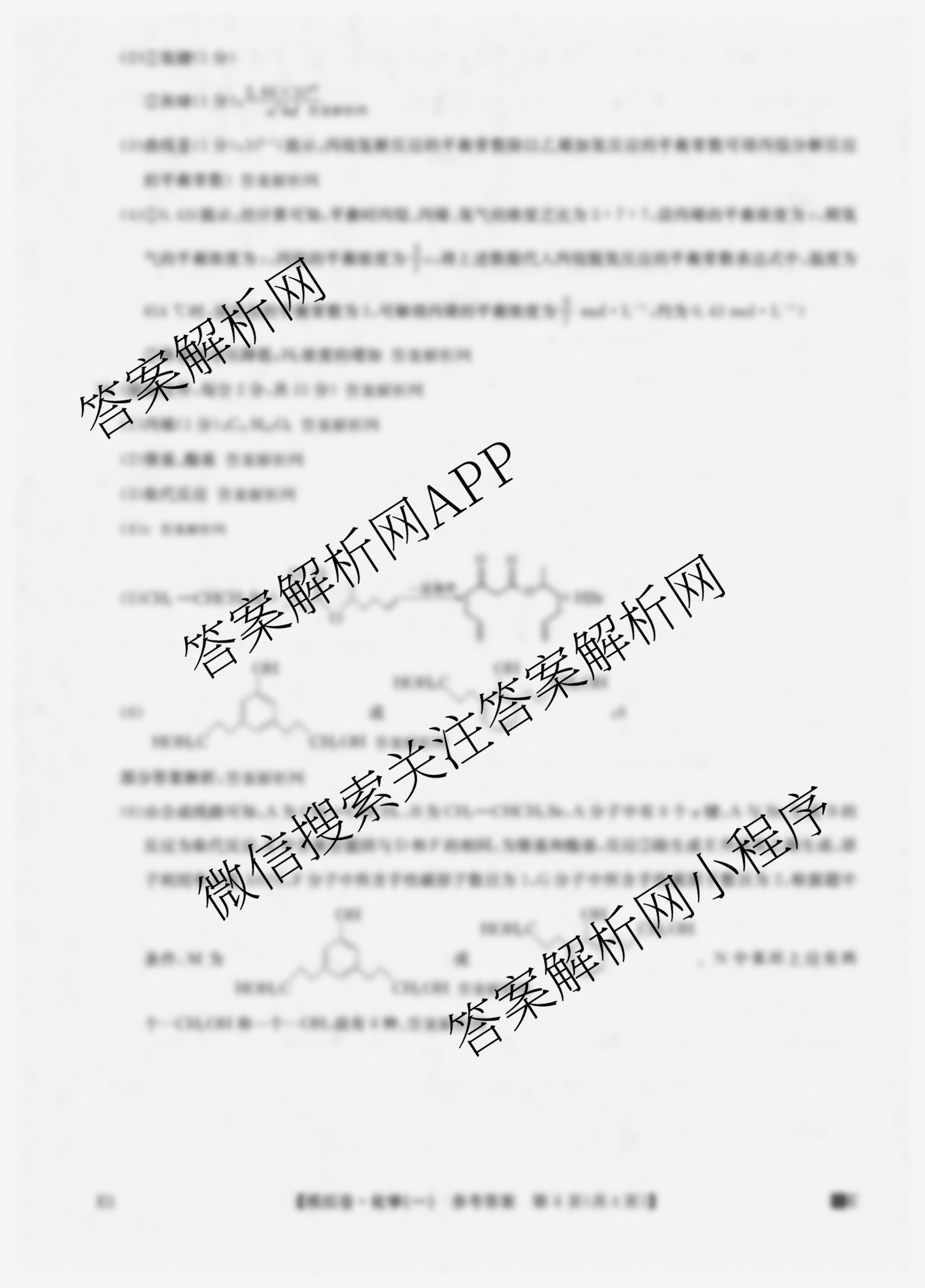 - [高三]2026年普通高中学业水平选择性考试仿真模拟卷(一)1化学(安徽)答案