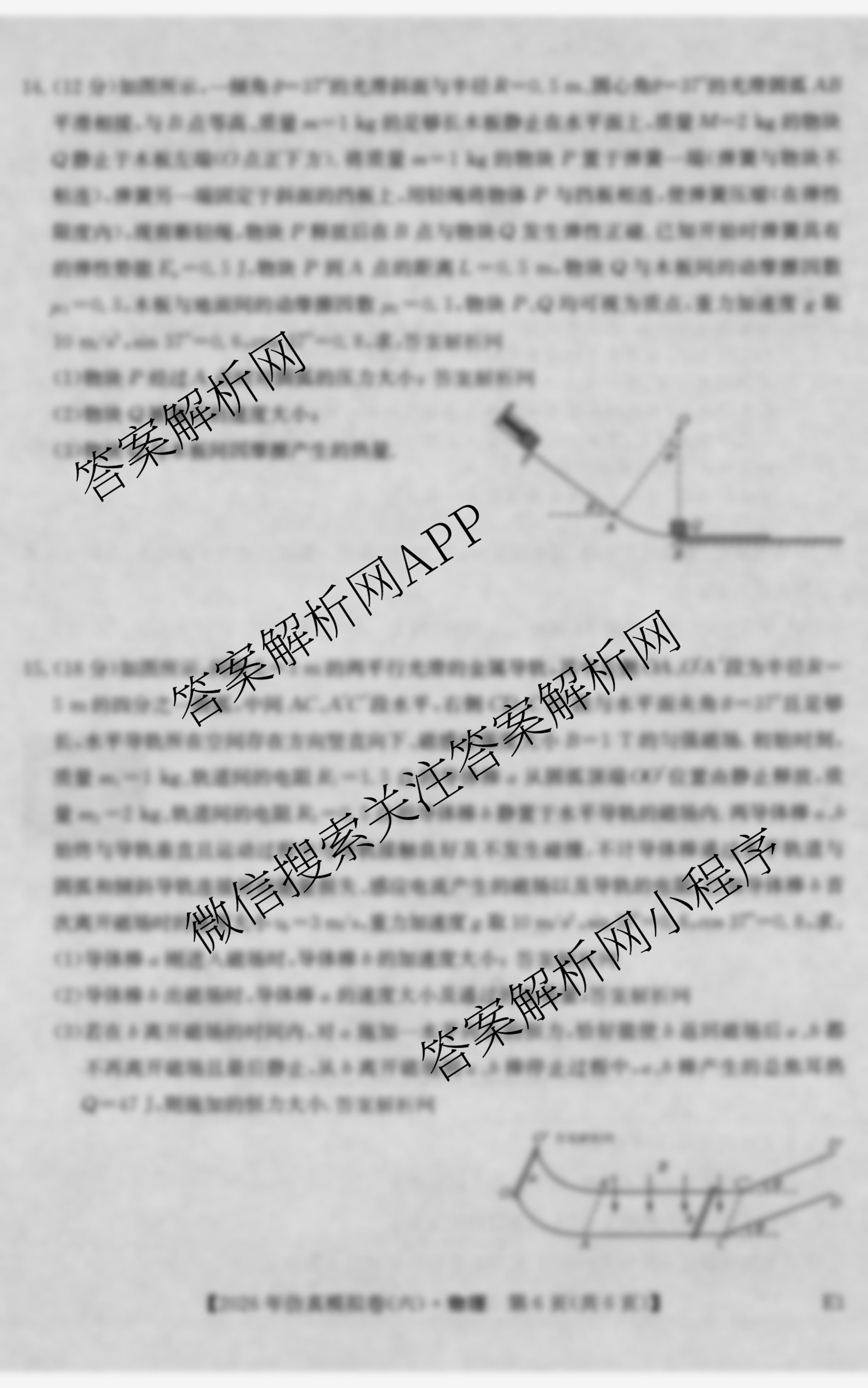 - 高三2026年普通高中学业水平选择性考试仿真模拟卷(六)6物理(安徽)答案