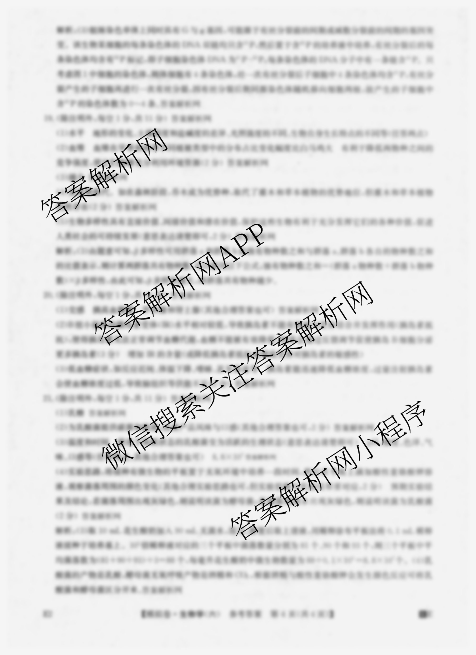 - (高三)2026年普通高中学业水平选择性考试仿真模拟卷(六)6生物(安徽)答案