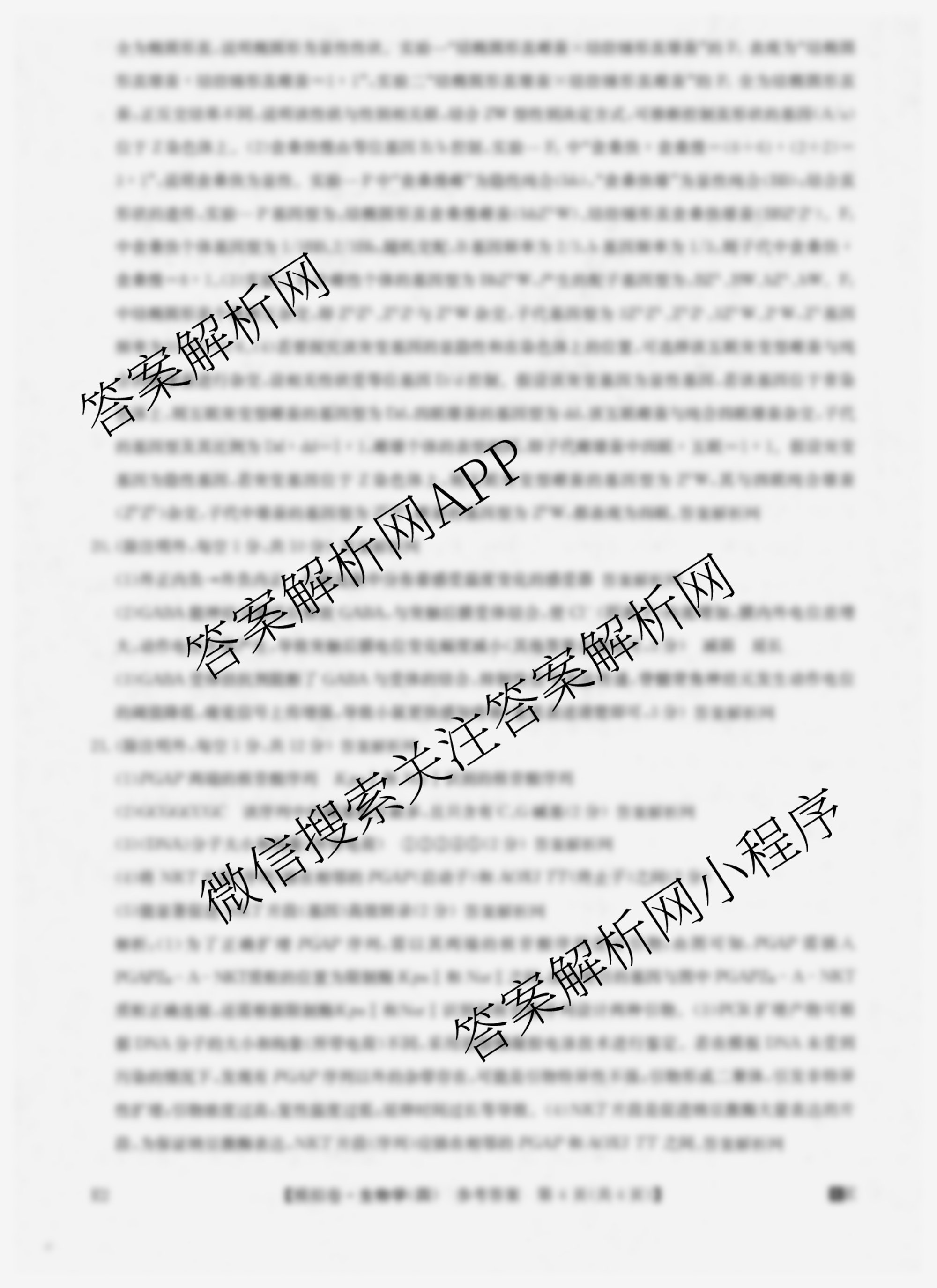 - [高三]2026年普通高中学业水平选择性考试仿真模拟卷(四)4生物(E2)答案