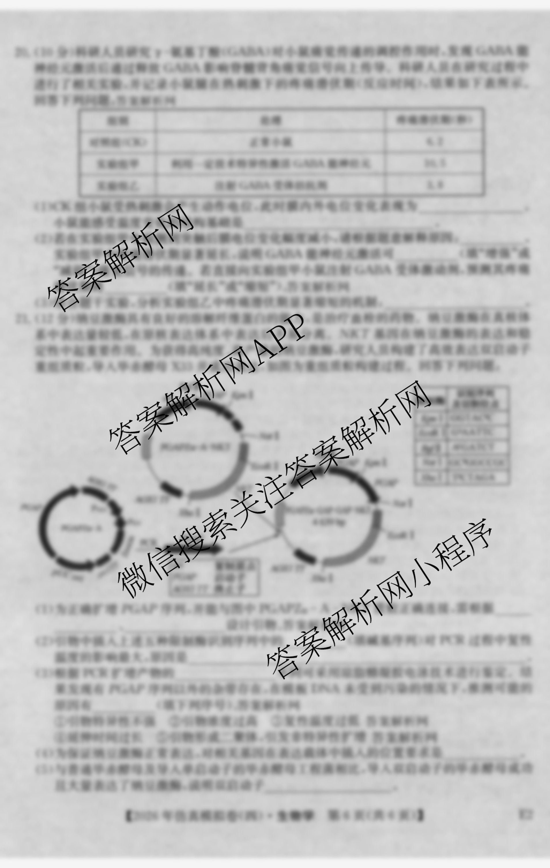 - 2026年普通高中学业水平选择性考试仿真模拟卷(四)4生物(安徽)答案