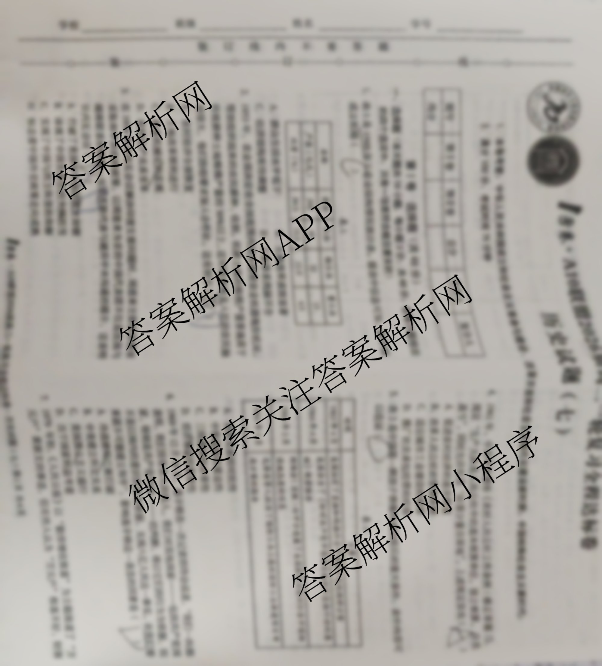 1号卷A10联盟2026届高三一轮复习全程达标卷(七)7历史试题