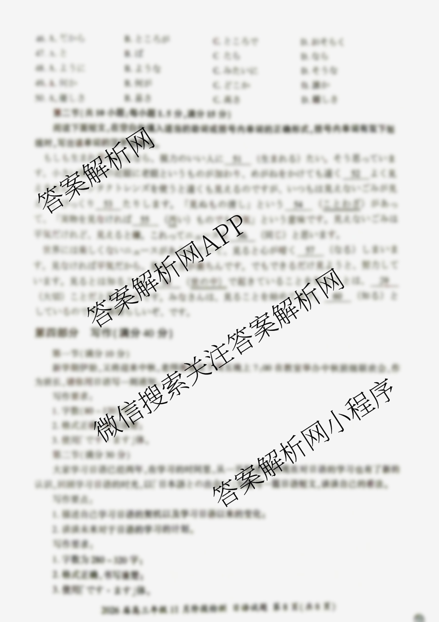 - (高三)百师联盟·2026届年级11月阶段检测日语答案