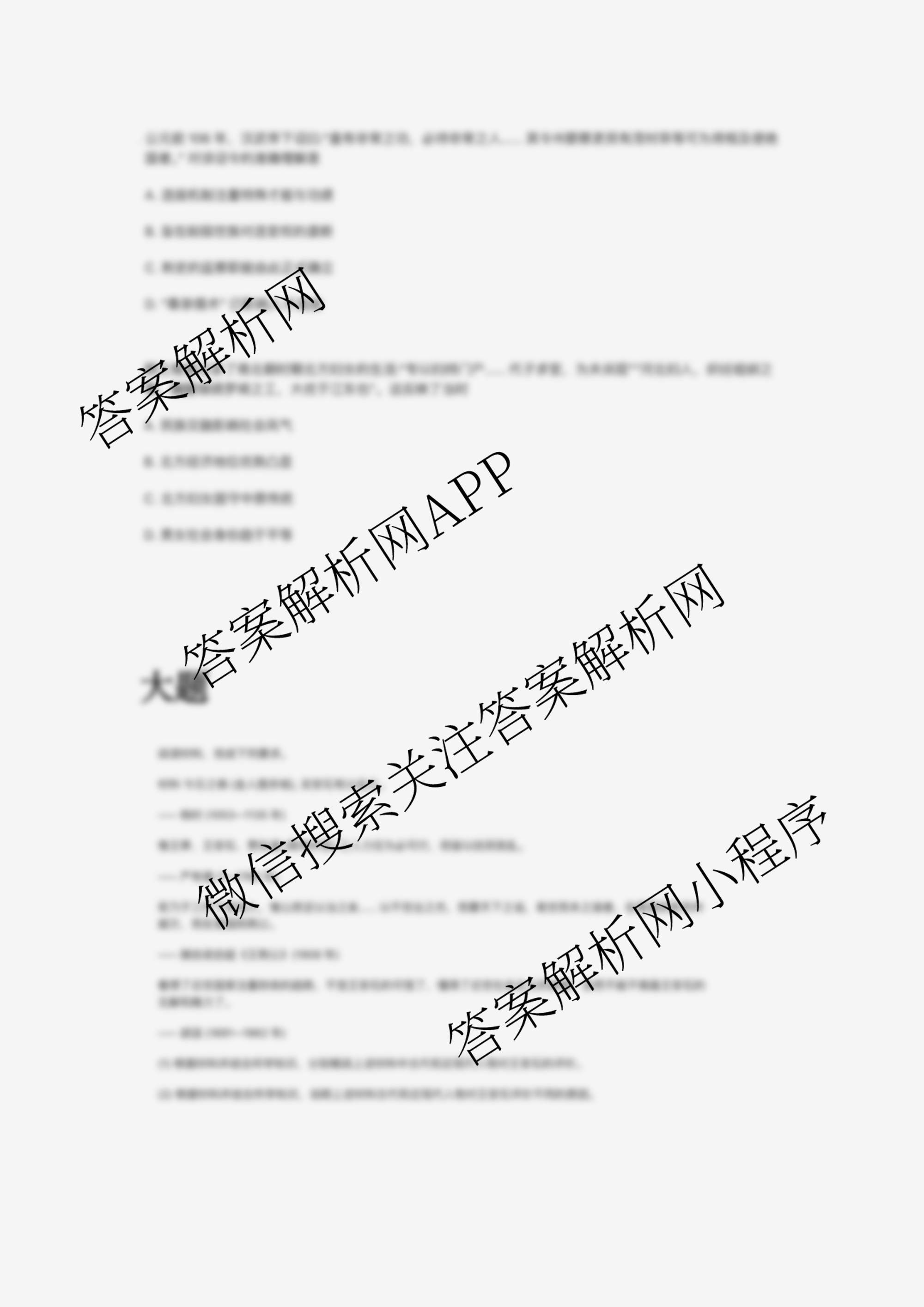 - 百师联盟2026届[高三]年级11月阶段检测历史(未知版本)答案