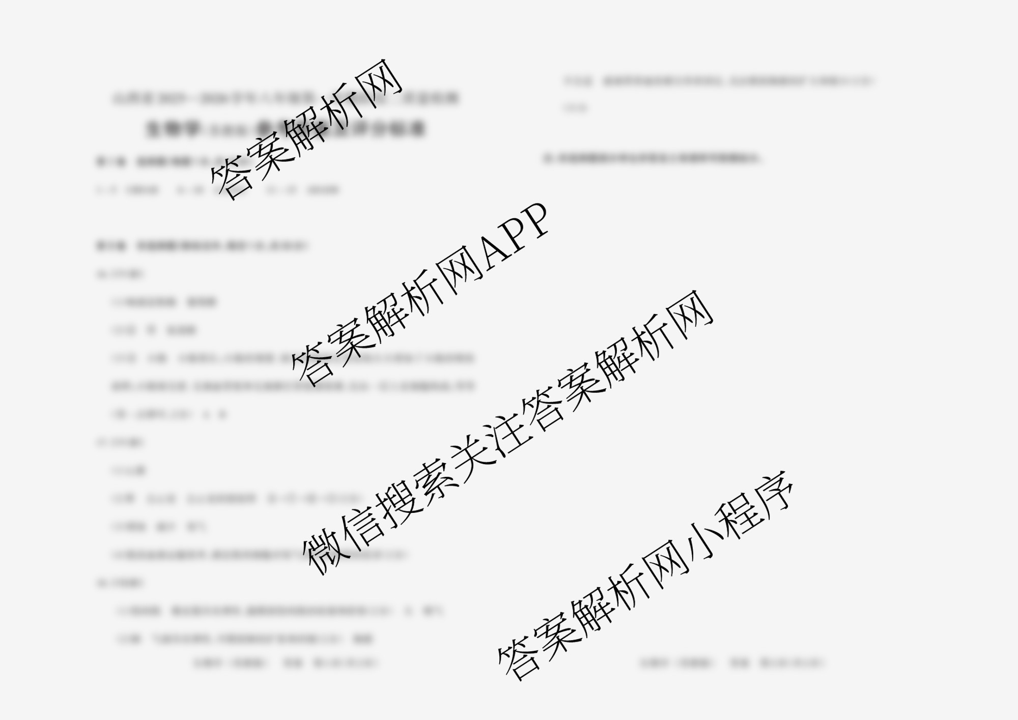 - (八年级)(晋文源)山西省2025-2026学年第一学期阶段二质量检测生物(苏教版)答案