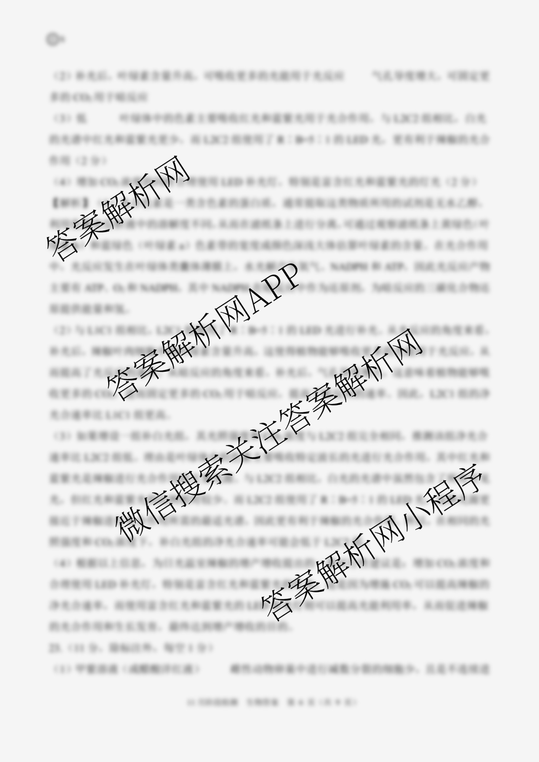 - 2026届(高三)百师联盟年级11月阶段检测生物(百H)答案