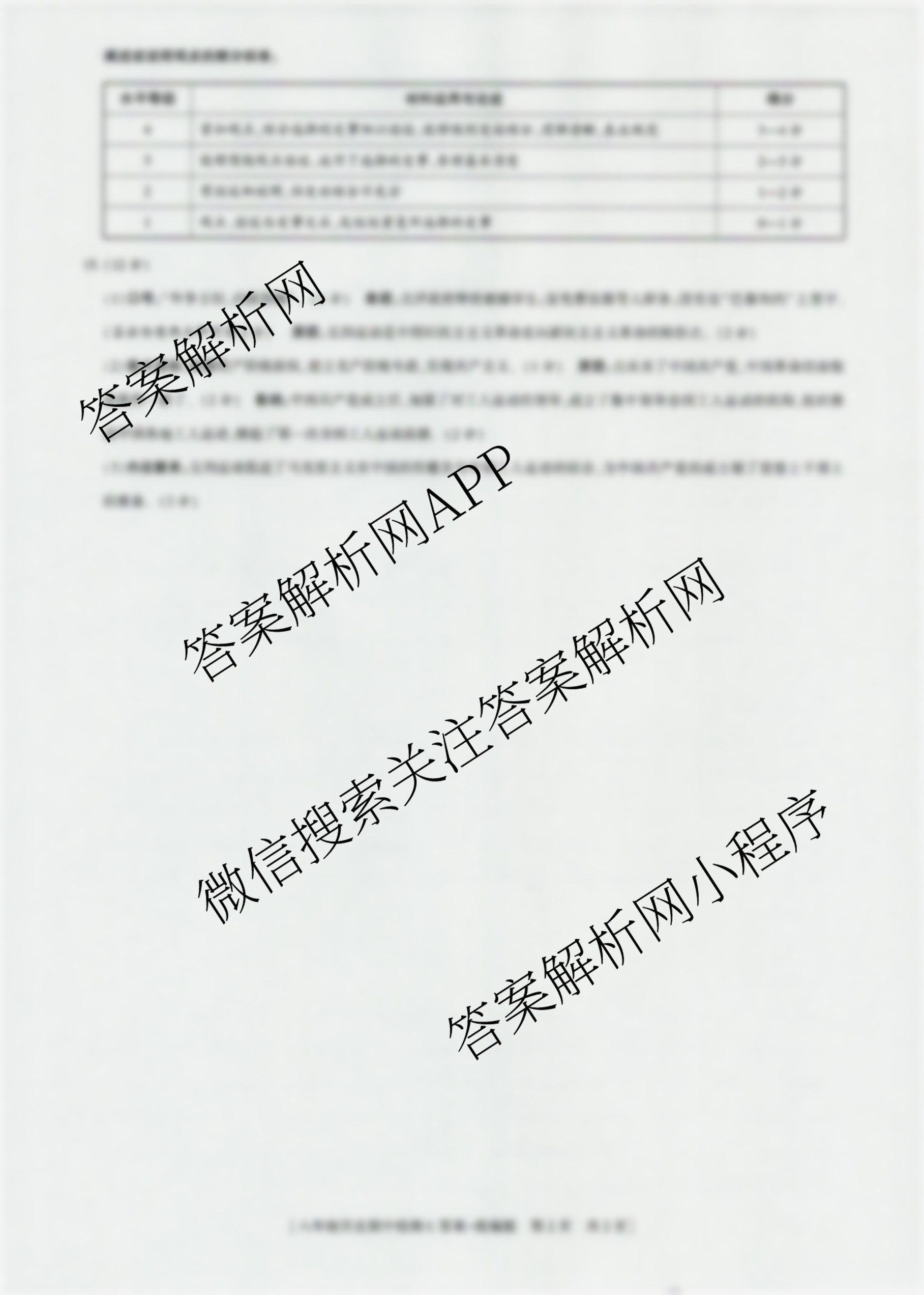- (益卷)·陕西省2025-2026学年度第一学期期中检测[试卷类型:C](八年级)历史(统编版)答案