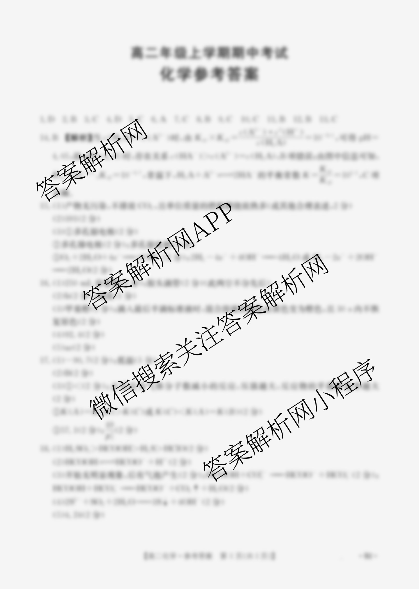 - [高二]河北省2025~2026年级上学期期中考试(11.12)化学(B2)答案