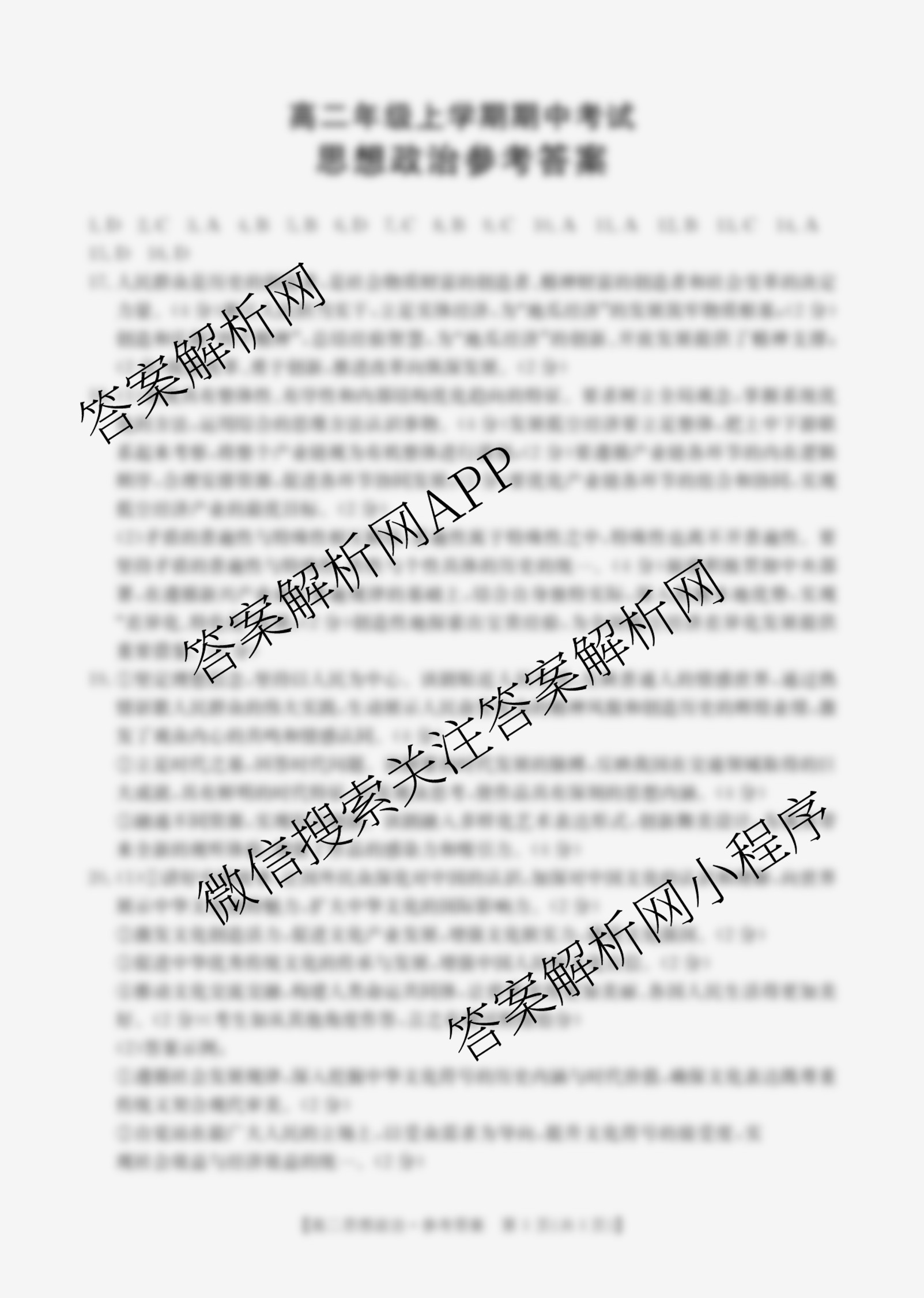 - 2025-2026高二河北省年级上学期期中考试(11.12)政治答案