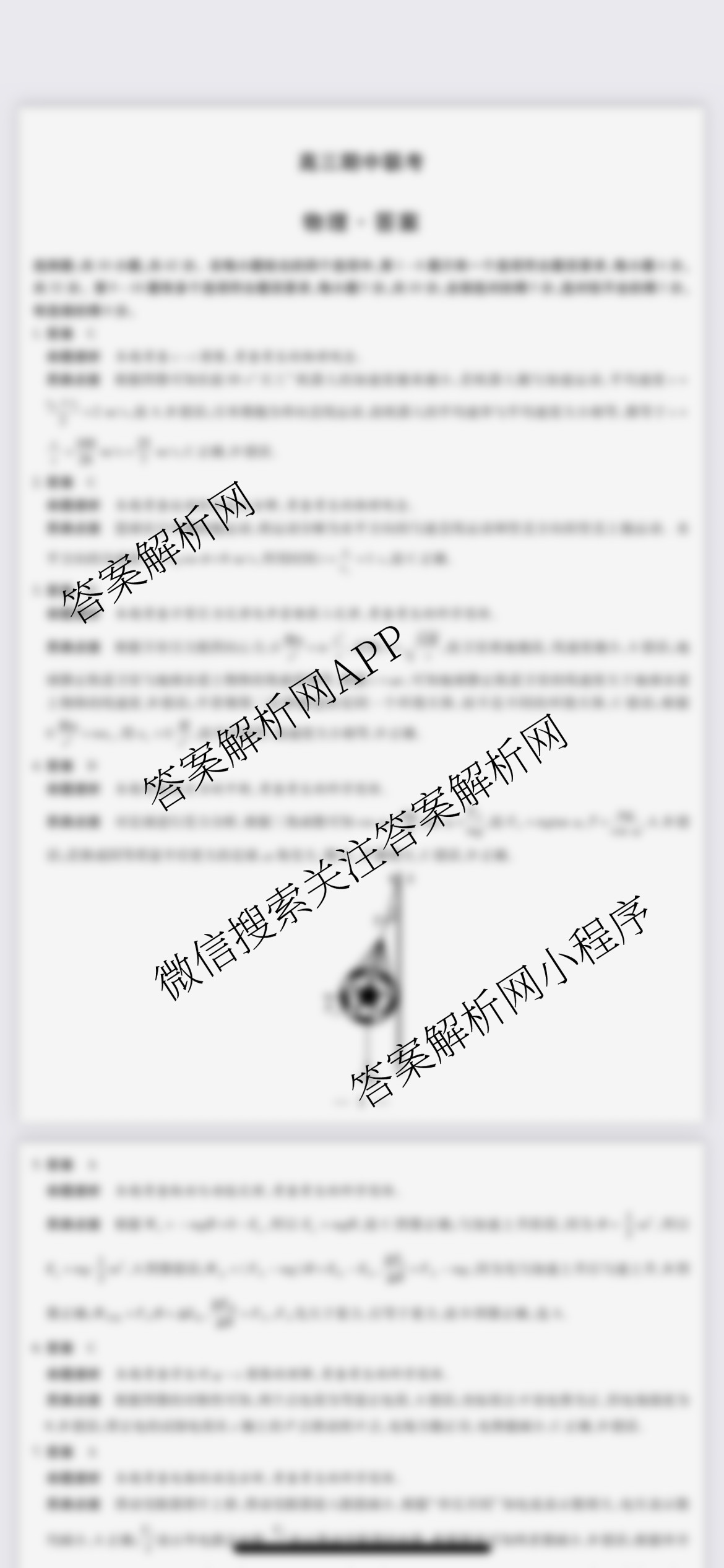 - (天一大联考)安徽2026届(高三)期中联考(11月)物理(合肥专版)答案