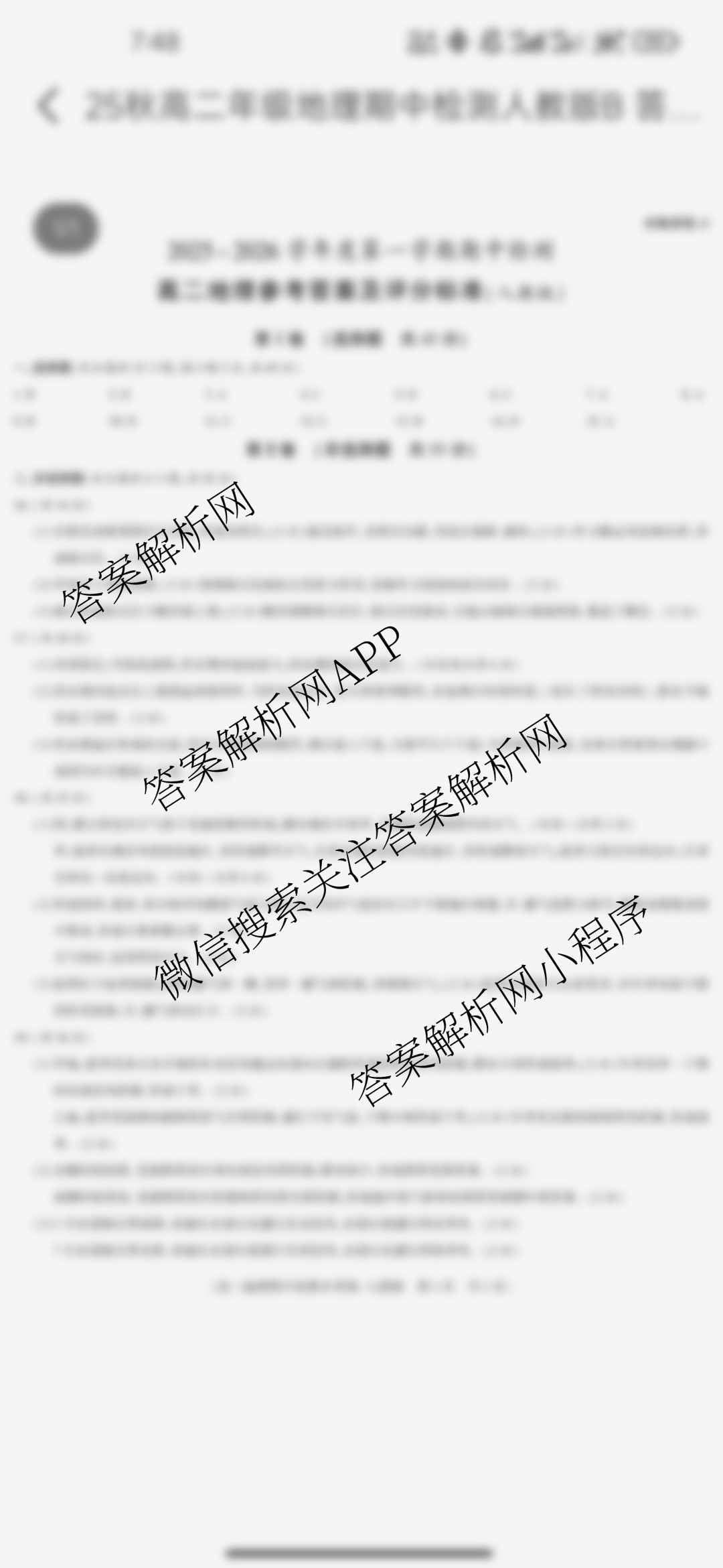 - 2025-2026(高二)[益卷]·陕西省学年度第一学期期中检测[试卷类型:B]地理(人教版)答案