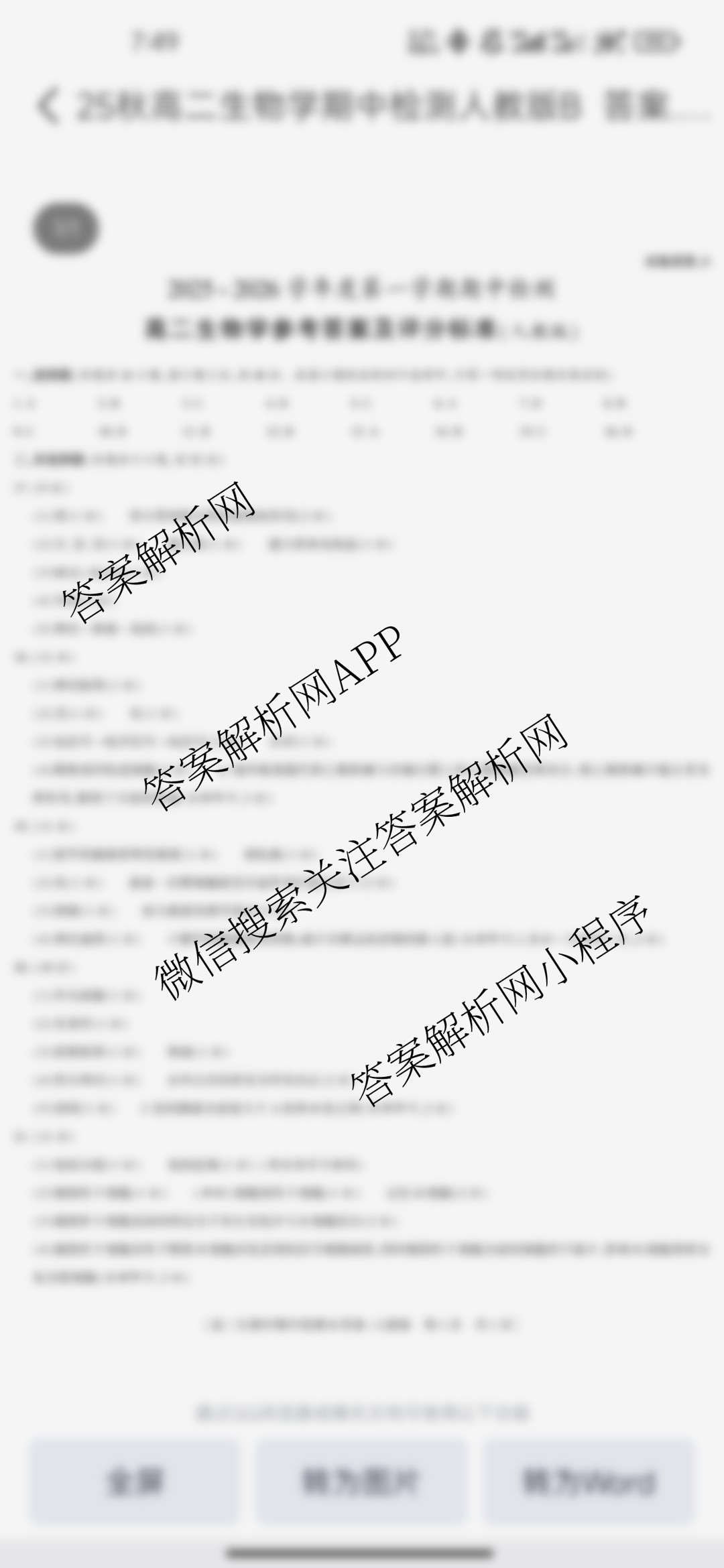 - [益卷]·陕西省2025-2026学年度第一学期期中检测[试卷类型:B][高二]生物(人教版)答案