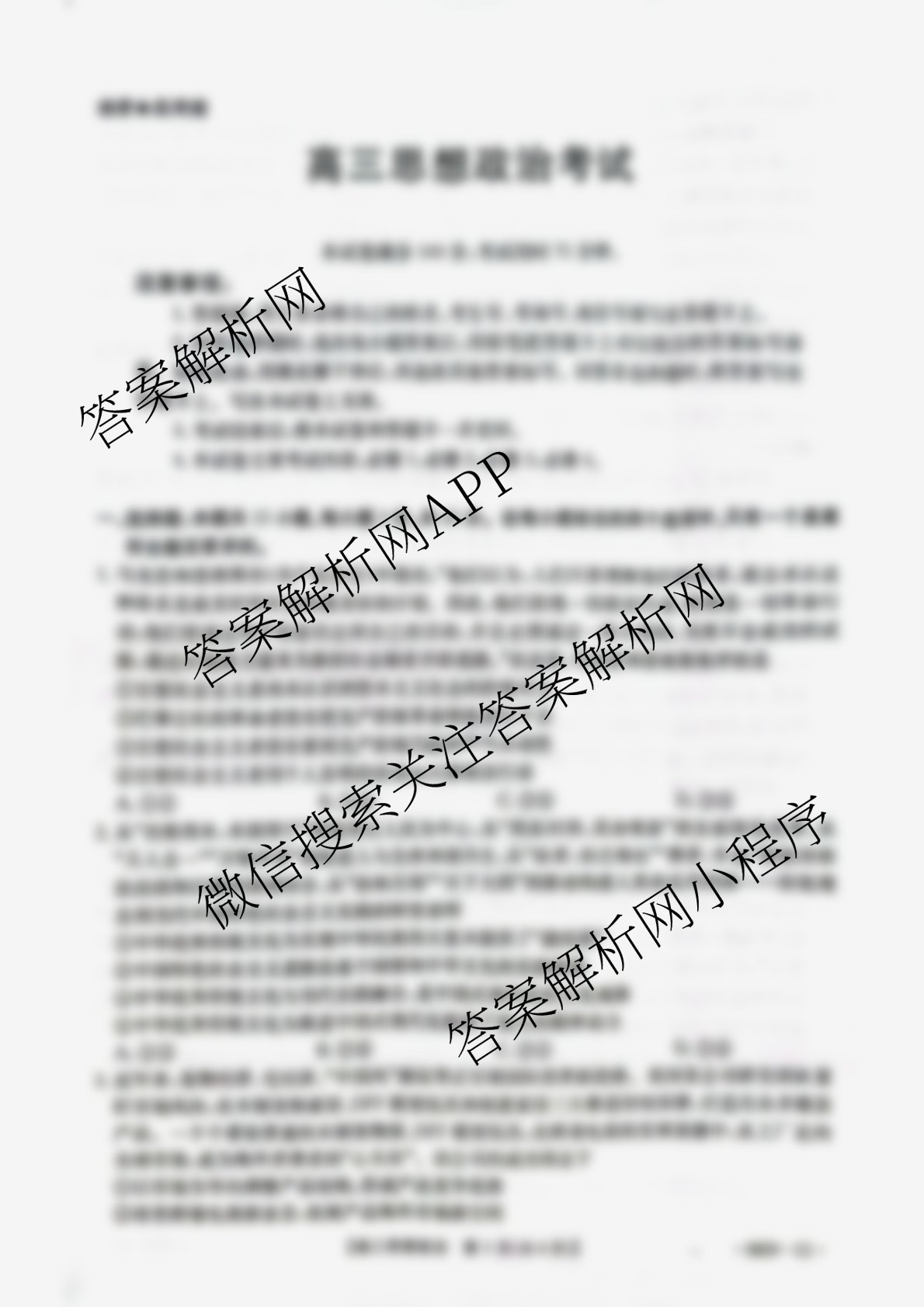 - 2026届(高三)[百万联考]河南省11月考试[HEN](11.13)政治(C1)答案