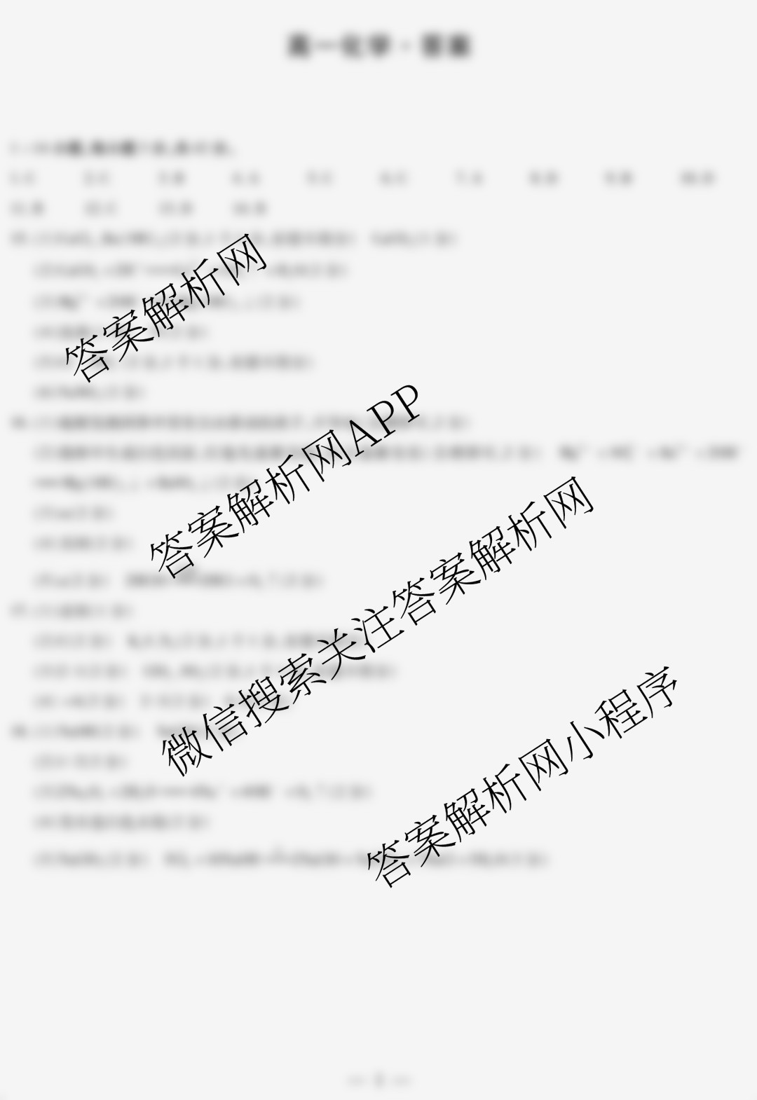 [高一]天一大联考·2025~2026学年(上)湘一名校联盟(无标题)化学答案