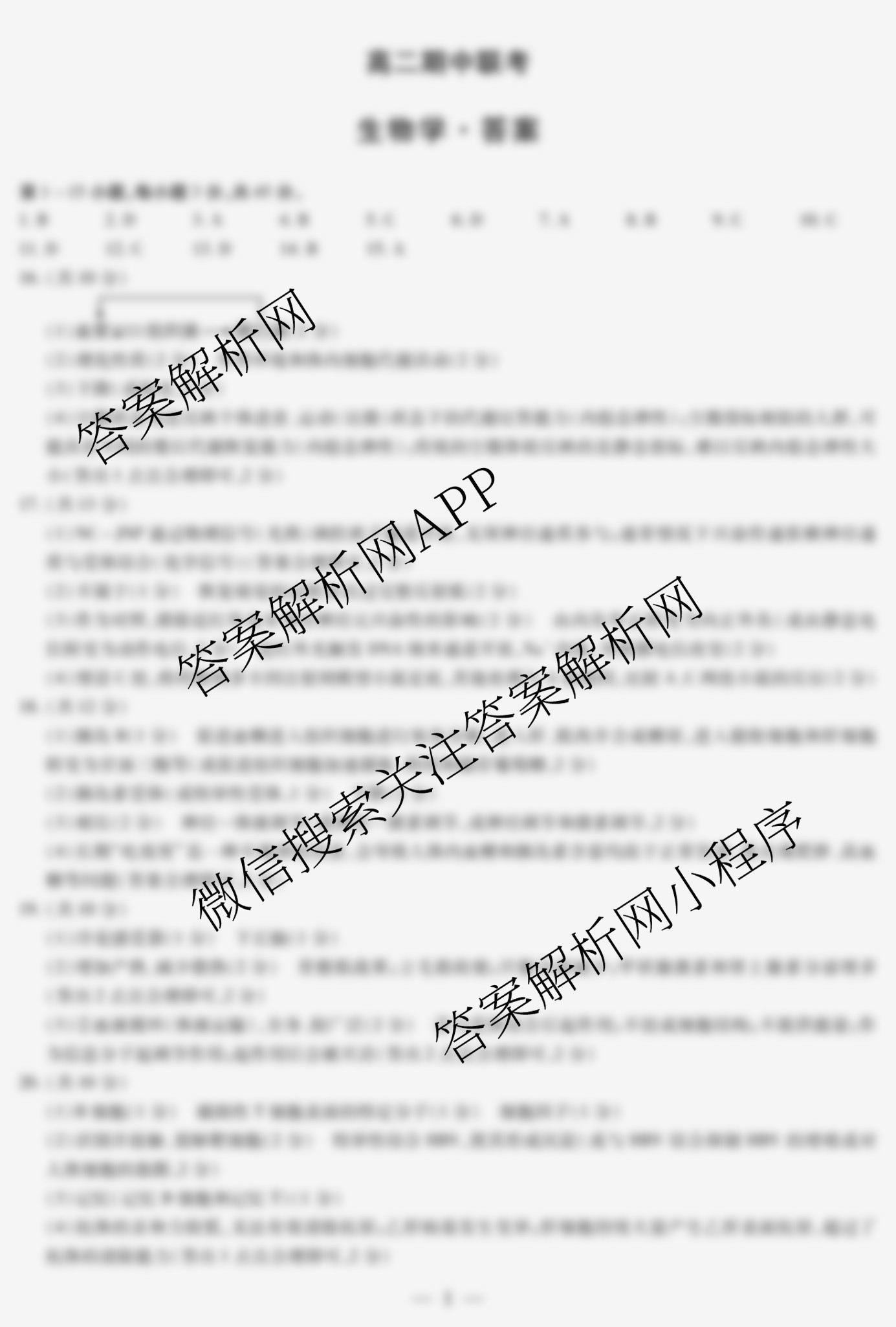- 2025-2026(高二)天一大联考·安徽卓越县中联盟学年期中联考(11.17)生物答案