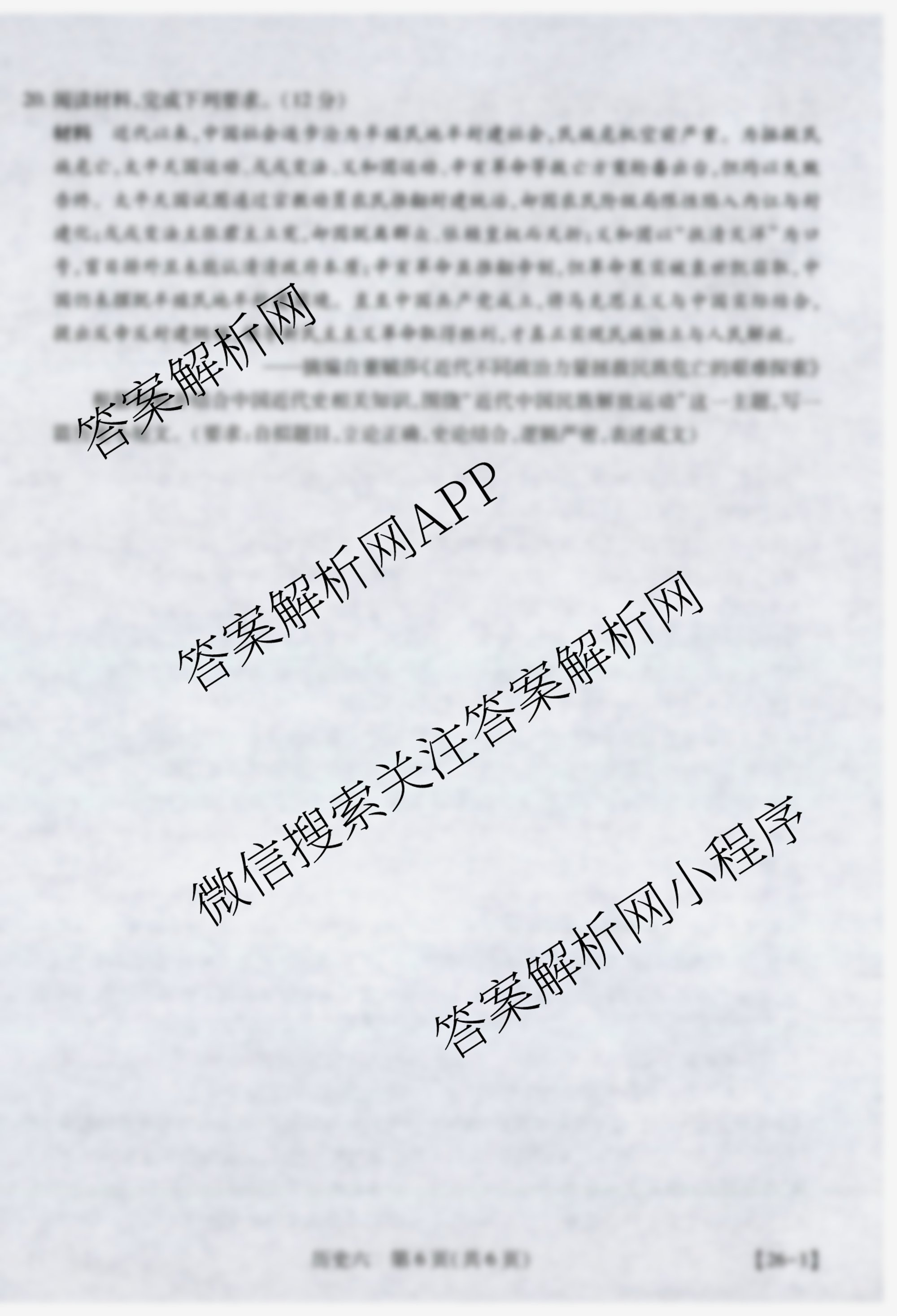 - 2026届智慧上进名校学术联盟高考模拟信息卷&冲刺卷&预测卷(六)6历史(HB)答案