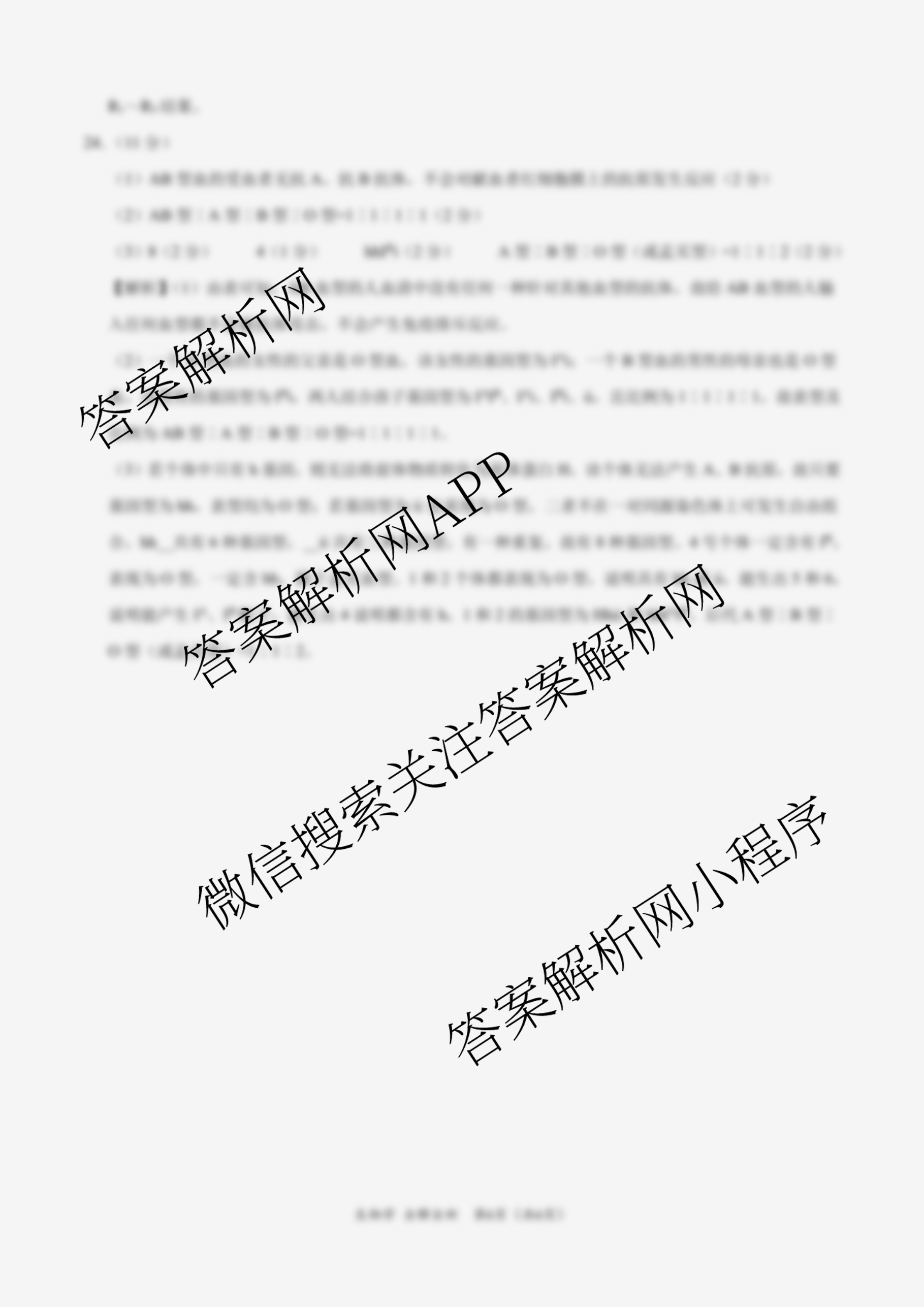 - 2026届高三(学科网)11月大联考考后强化卷生物(新课标卷)答案