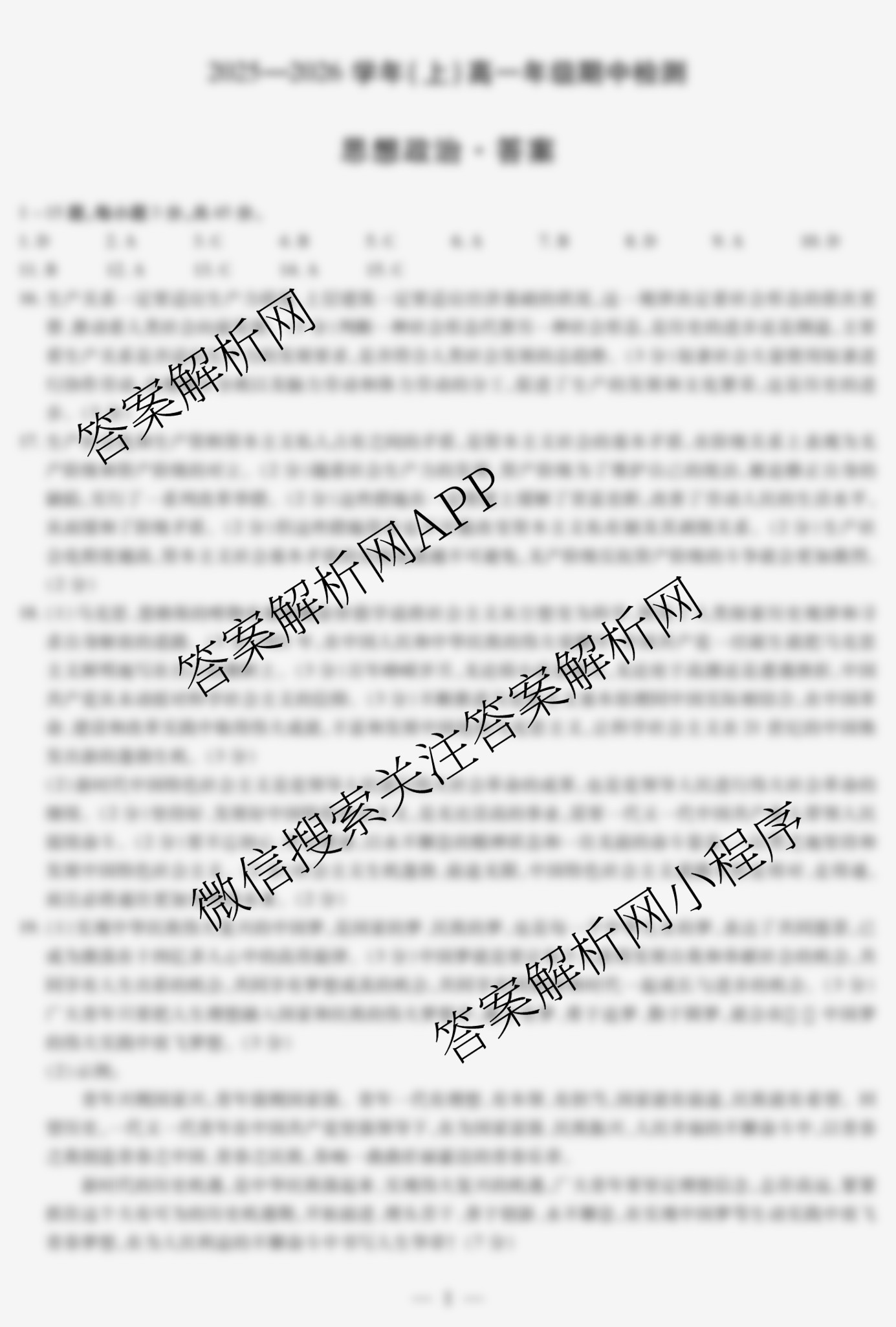 - 2025~2026天一大联考·河南省学年(上)[高一]年级期中检测[试卷类型:A]政治答案