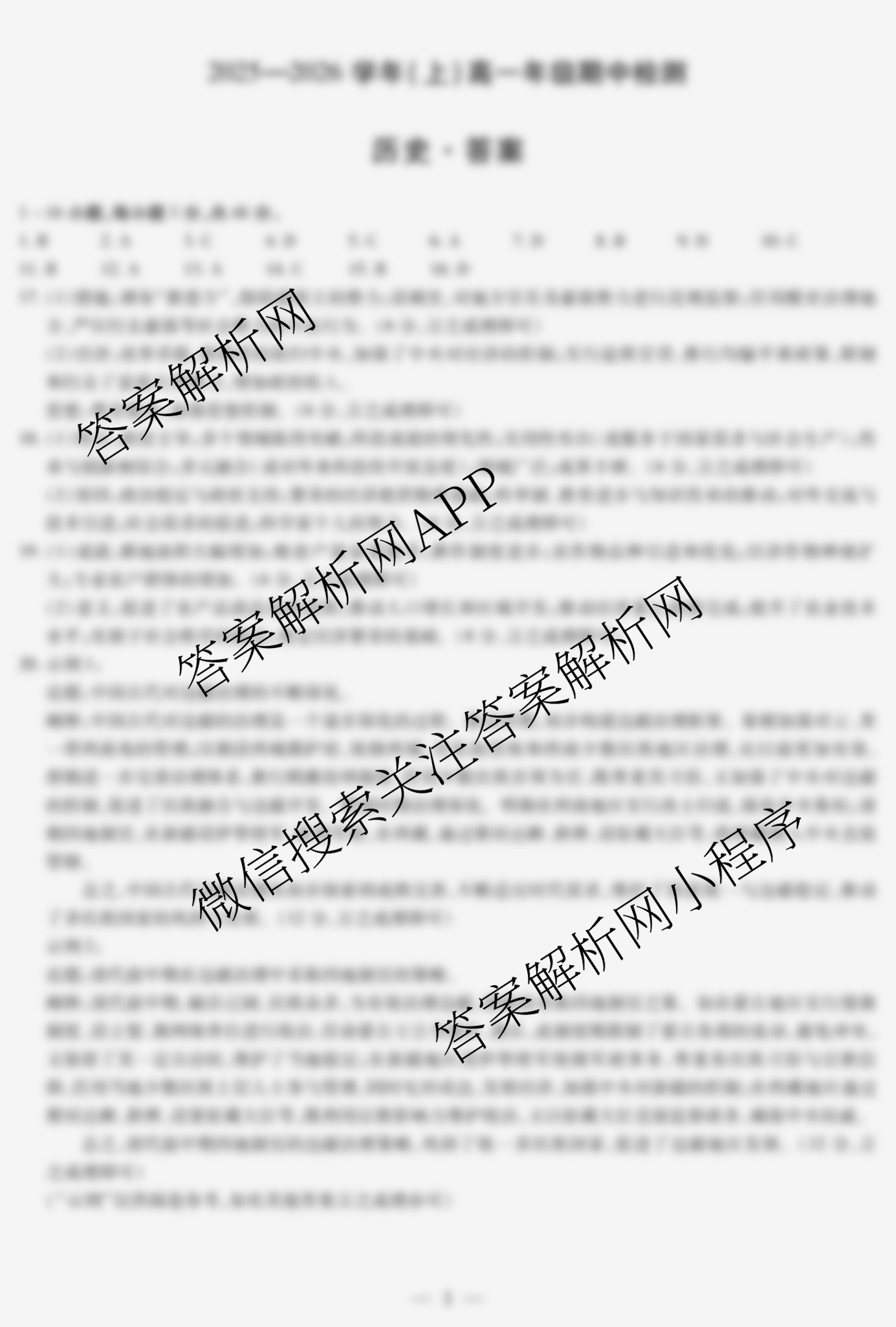- 2025-2026高一[天一大联考]河南省学年(上)年级期中检测[试卷类型:A]历史答案