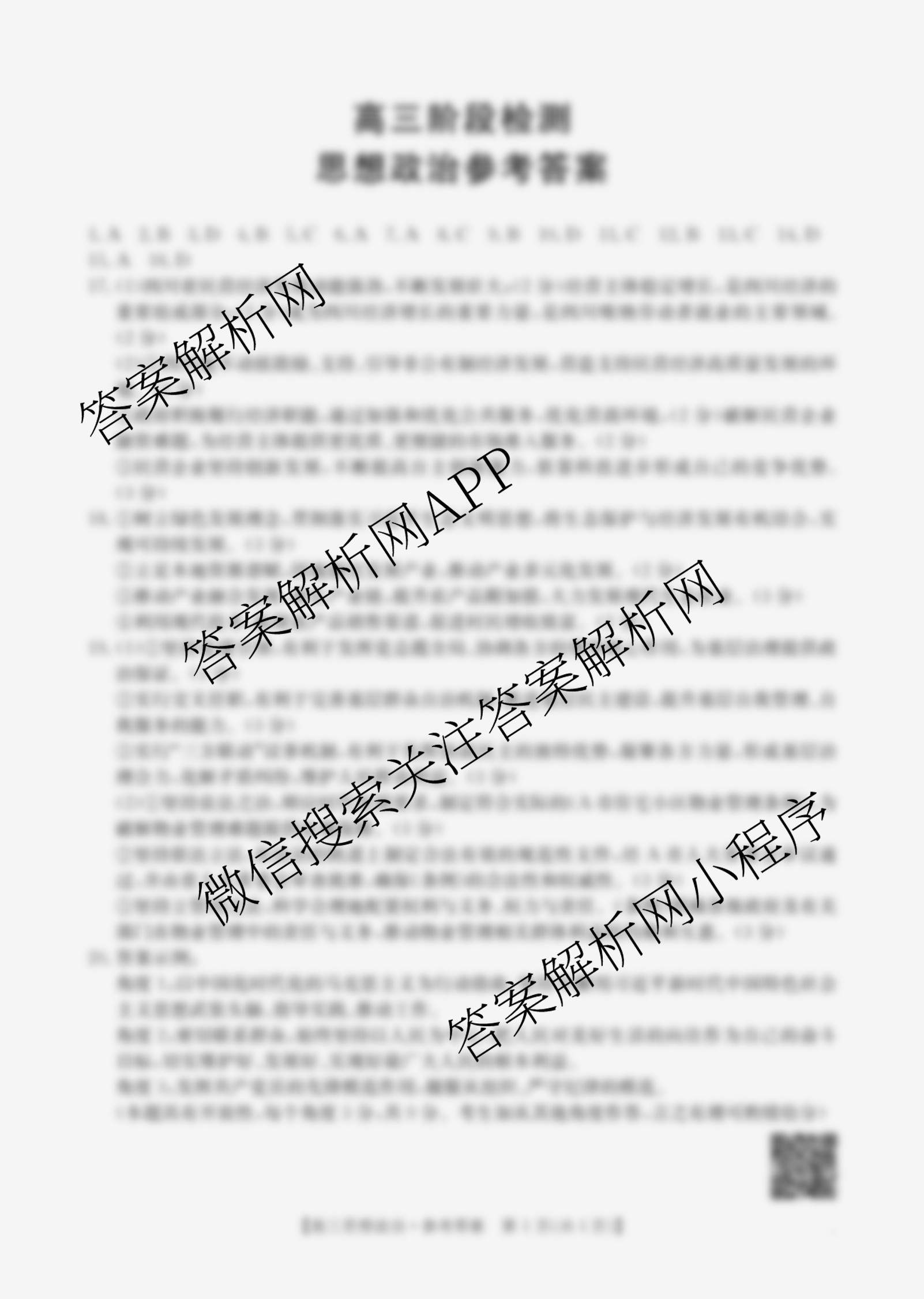 - 2026届(高三)甘肃阶段检测(11.25)政治答案