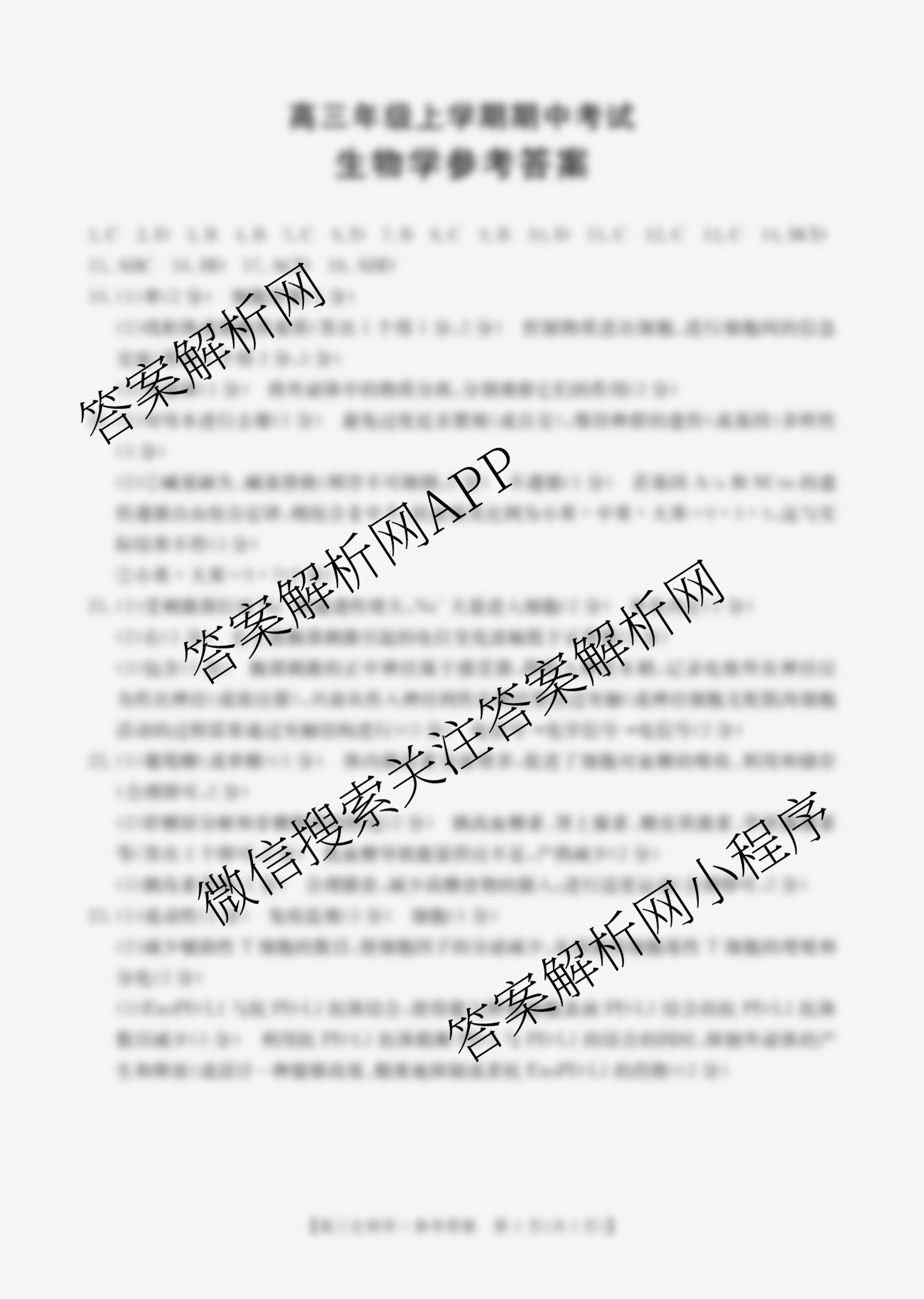 - (高三)河北省2025-2026年级上学期期中考试(11.28)生物(C1)答案