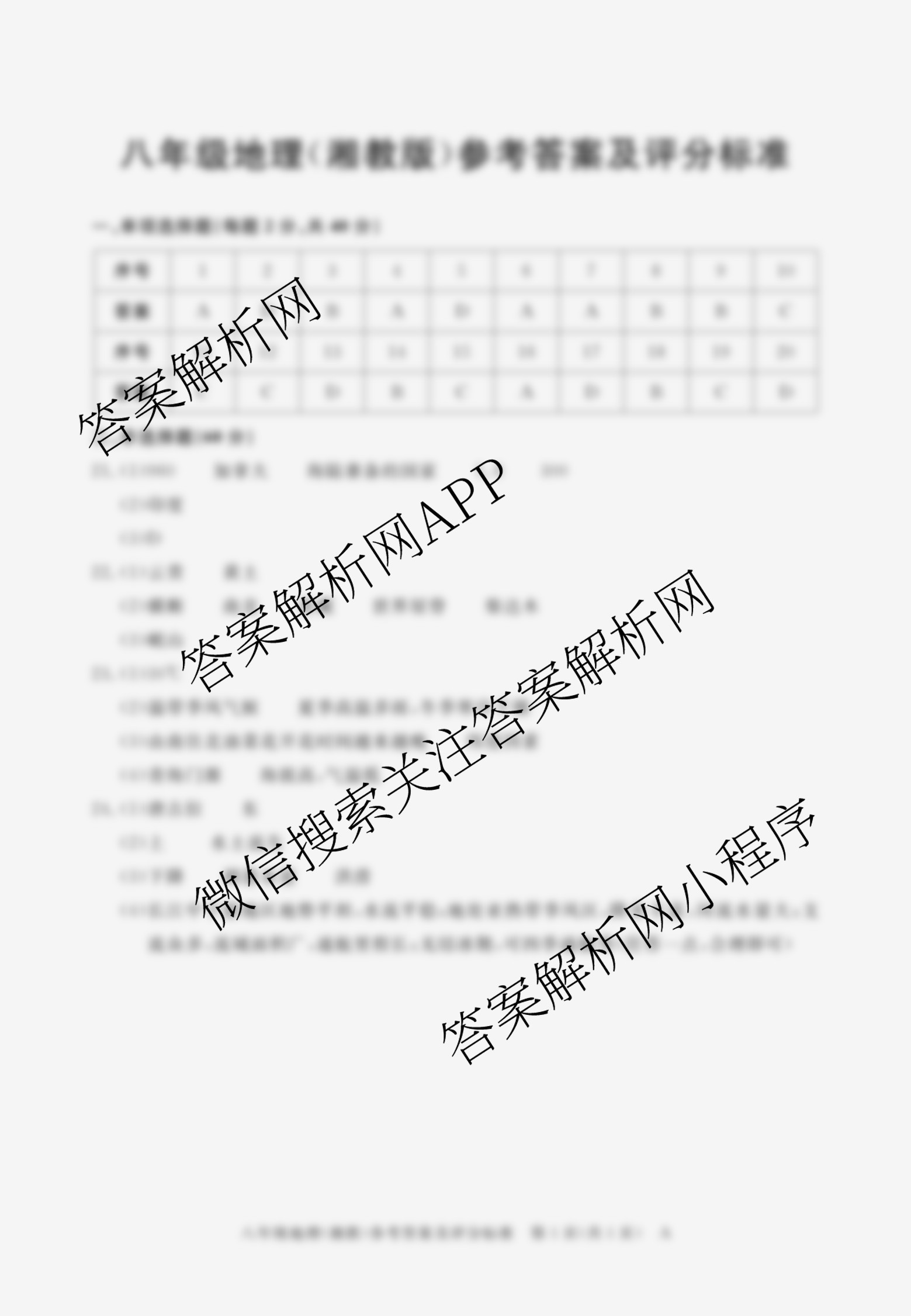 - 2025-2026安徽省学年[八年级]上学期期中教学质量调研A卷(11.13-14)地理(湘教版)答案