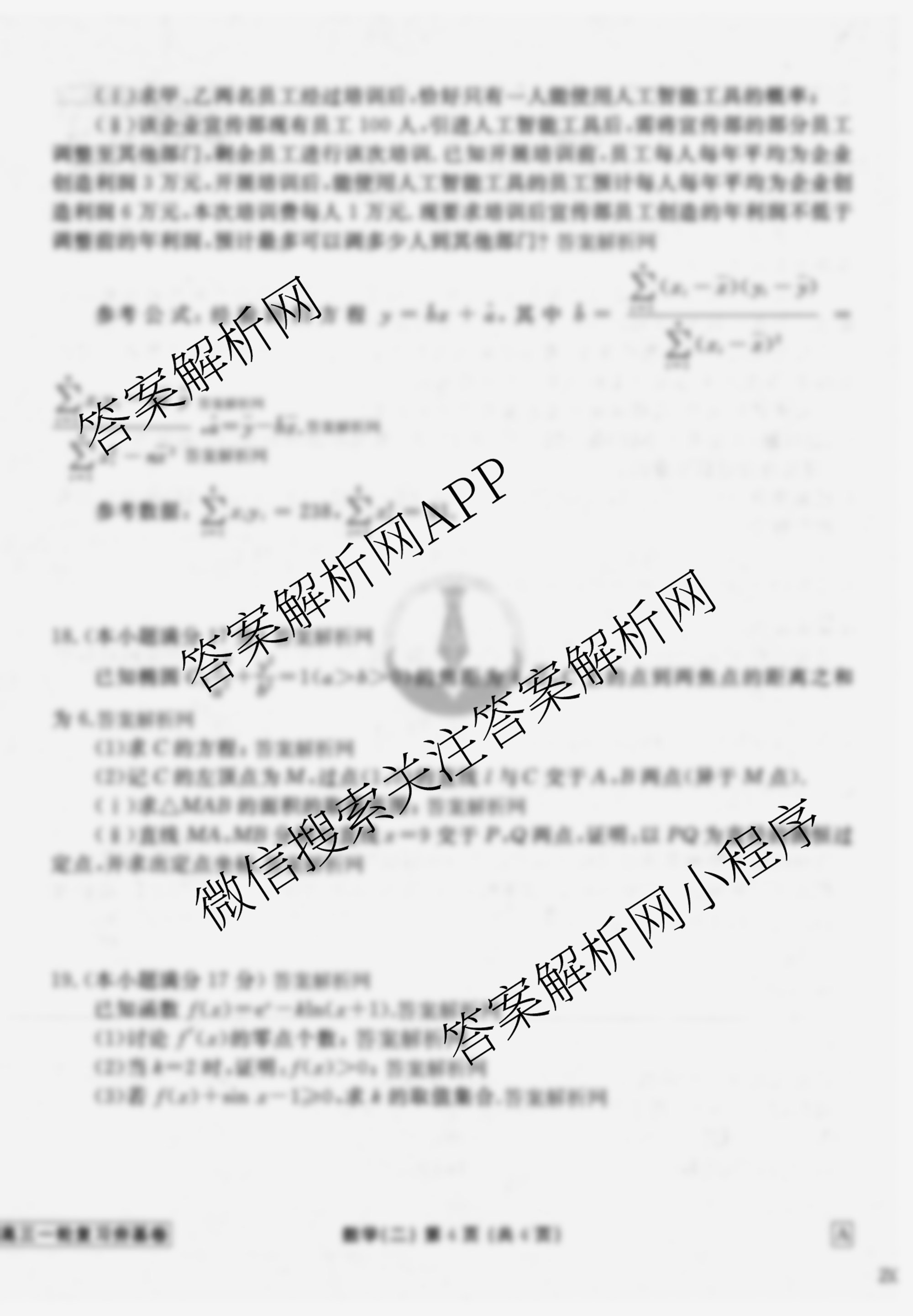 - [高三](衡水金卷先享题)夯基卷 2026年普通高等学校招生全国统一考试模拟 数学(B)(二)2答案