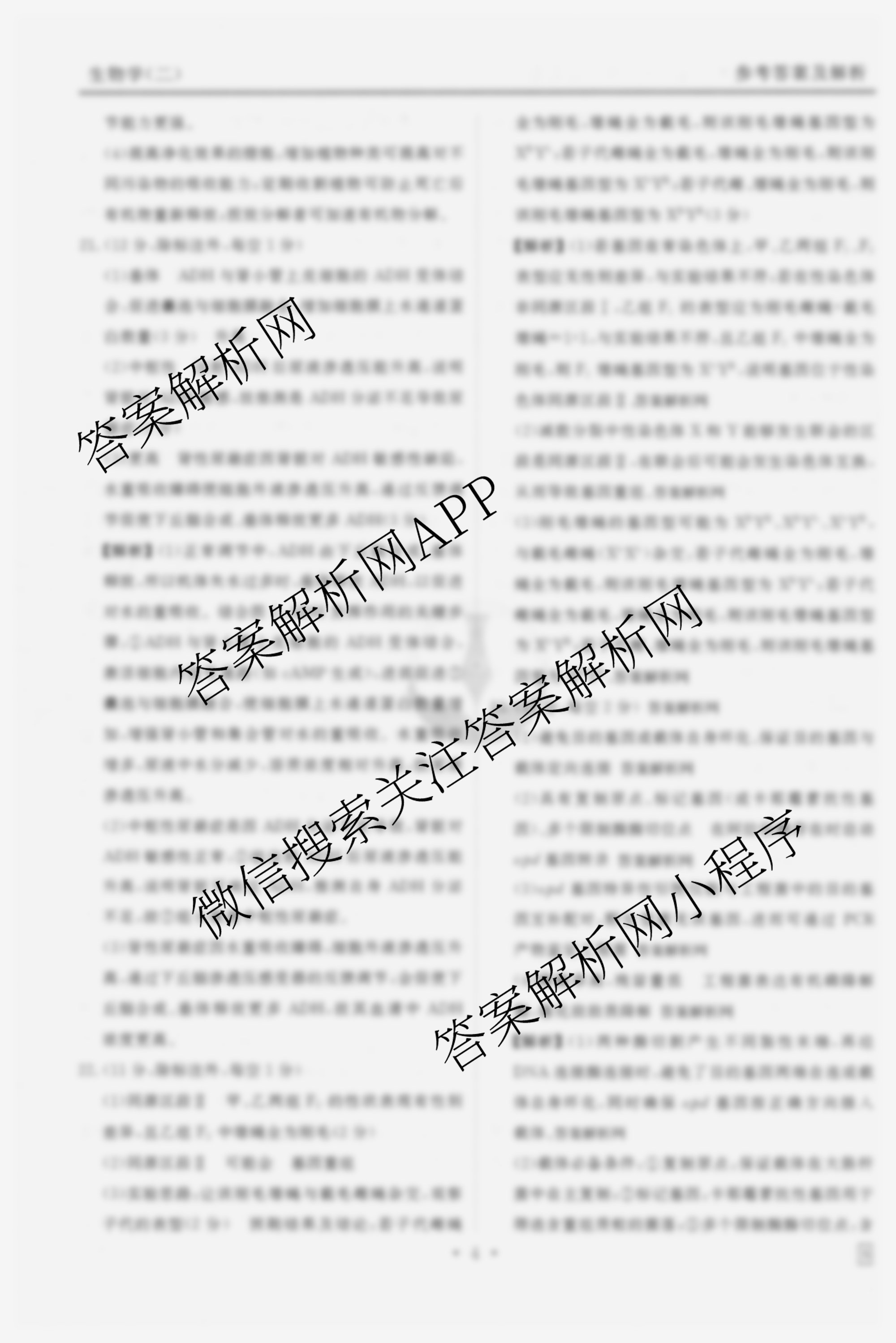 - (衡水金卷先享题)夯基卷 2026年普通高中学业水平选择性考试模拟试题(二)2生物(Y)答案