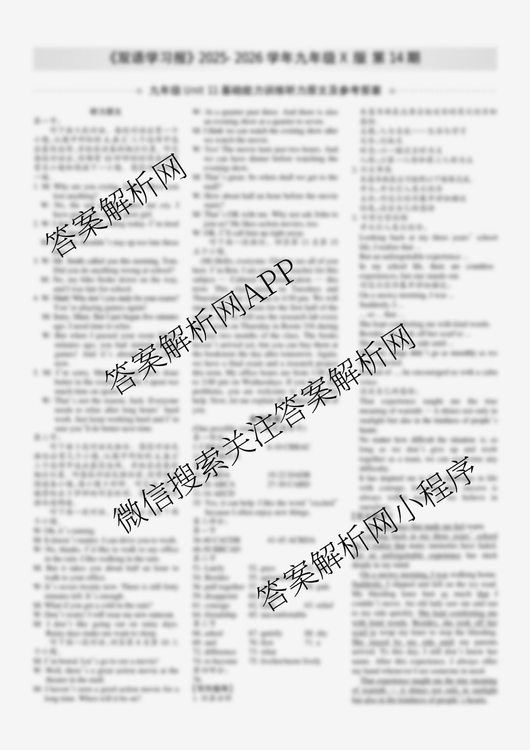 2025-2026 双语学习报 九年级 X版第14期答案