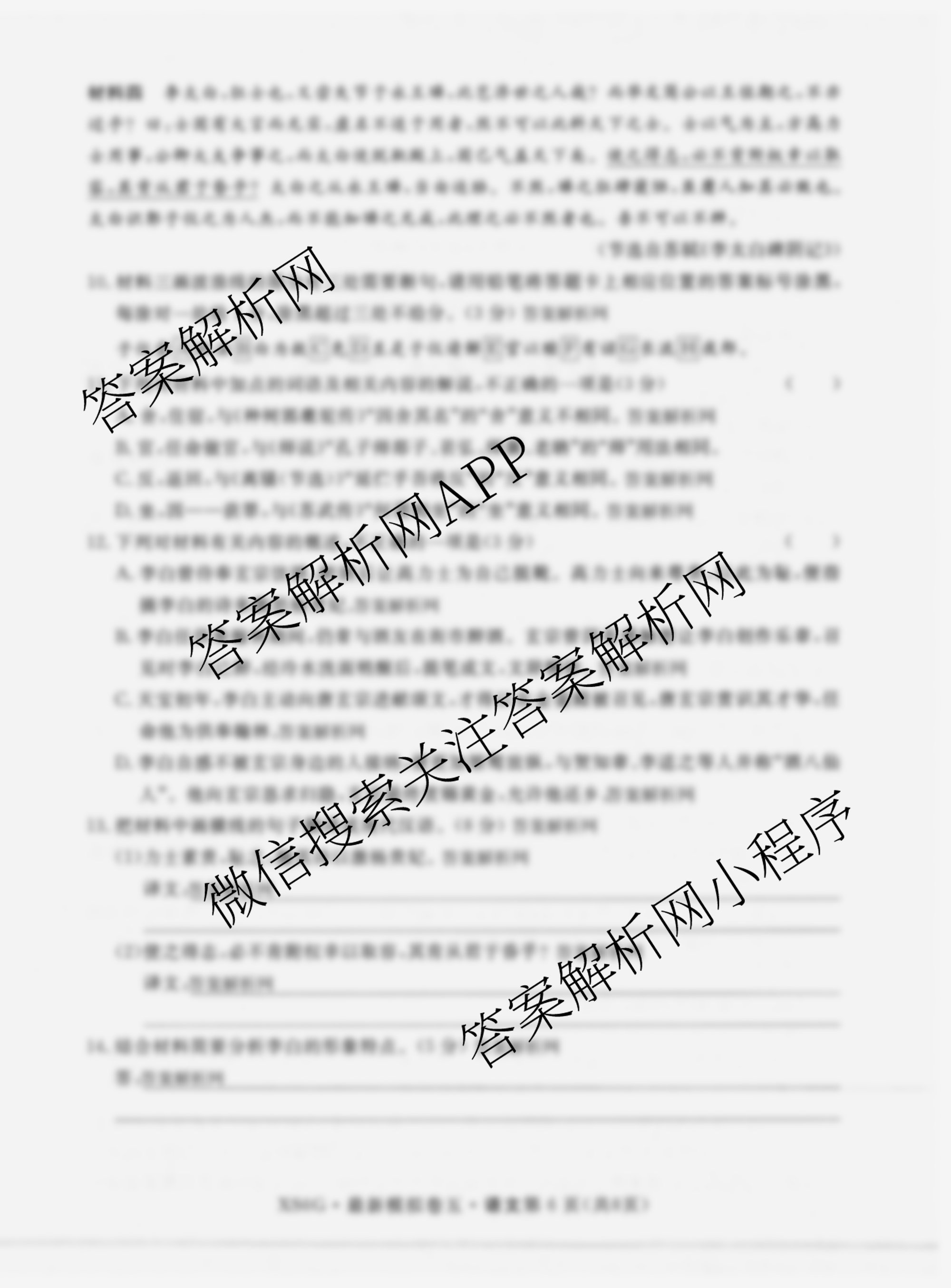 - 2026年普通高等学校招生统一考试最新模拟卷(五)5语文(XS6G)答案