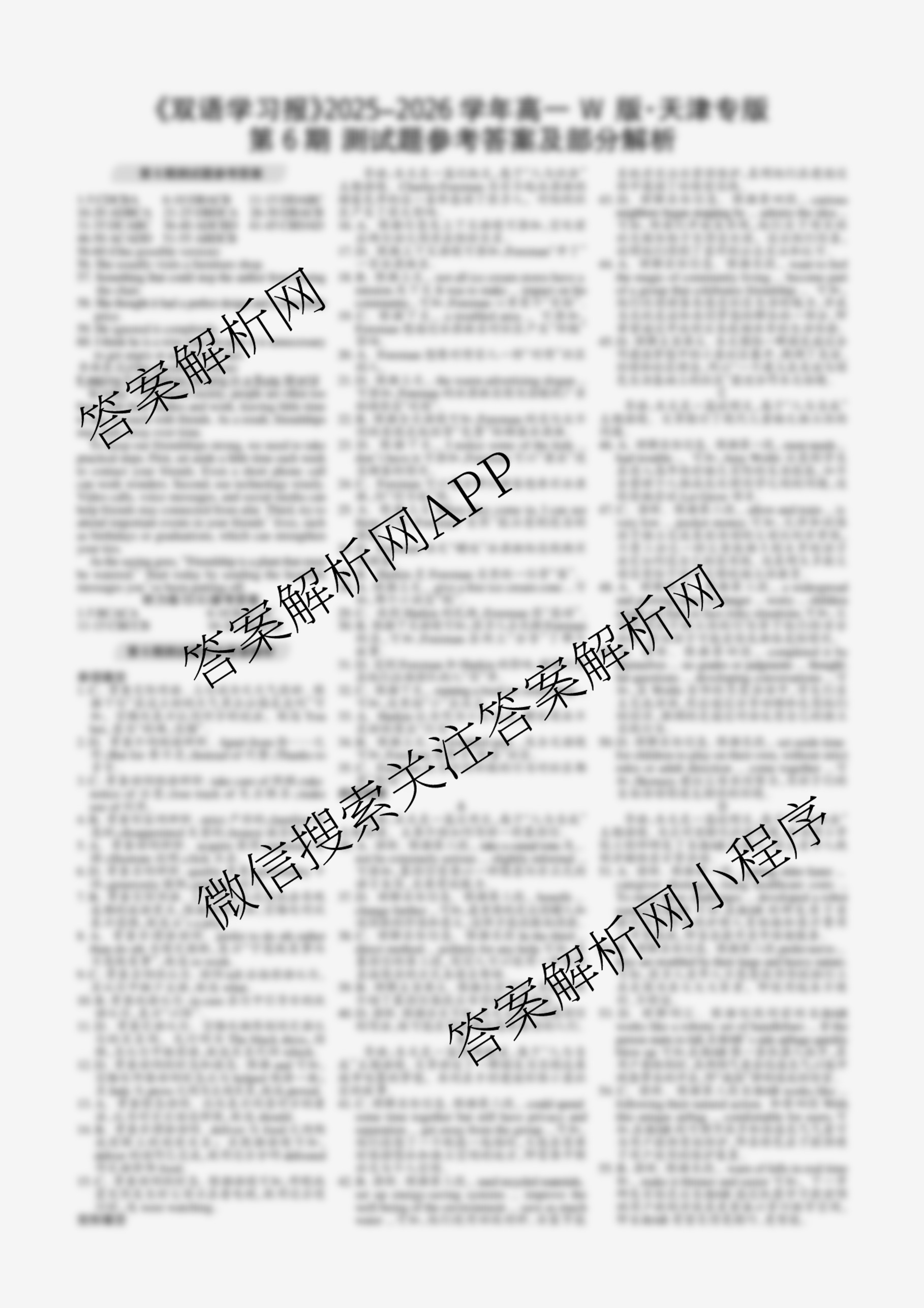 2025-2026 双语学习报 高一 W版天津专版第6期答案