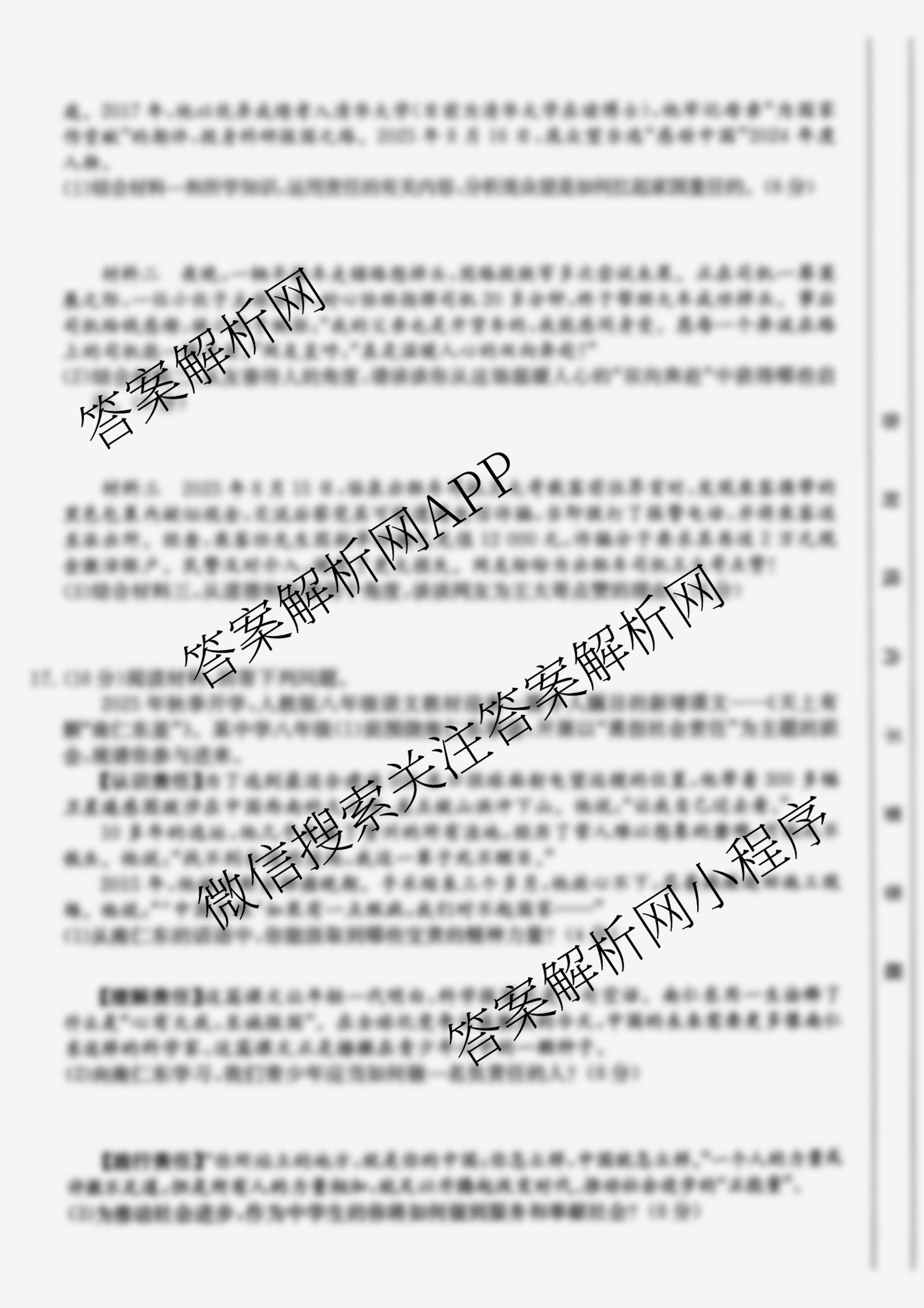 安徽省2025-2026八年级阶段评估[AH(3)]道德与法治(R)试题,目前学英语报答案已经汇总了安徽省2025-2026八年级阶段评估[AH(3)]道德与法治(R)试题的各科答案和试卷,获取更多初中阶段诊断答案解析,请在关注本站。