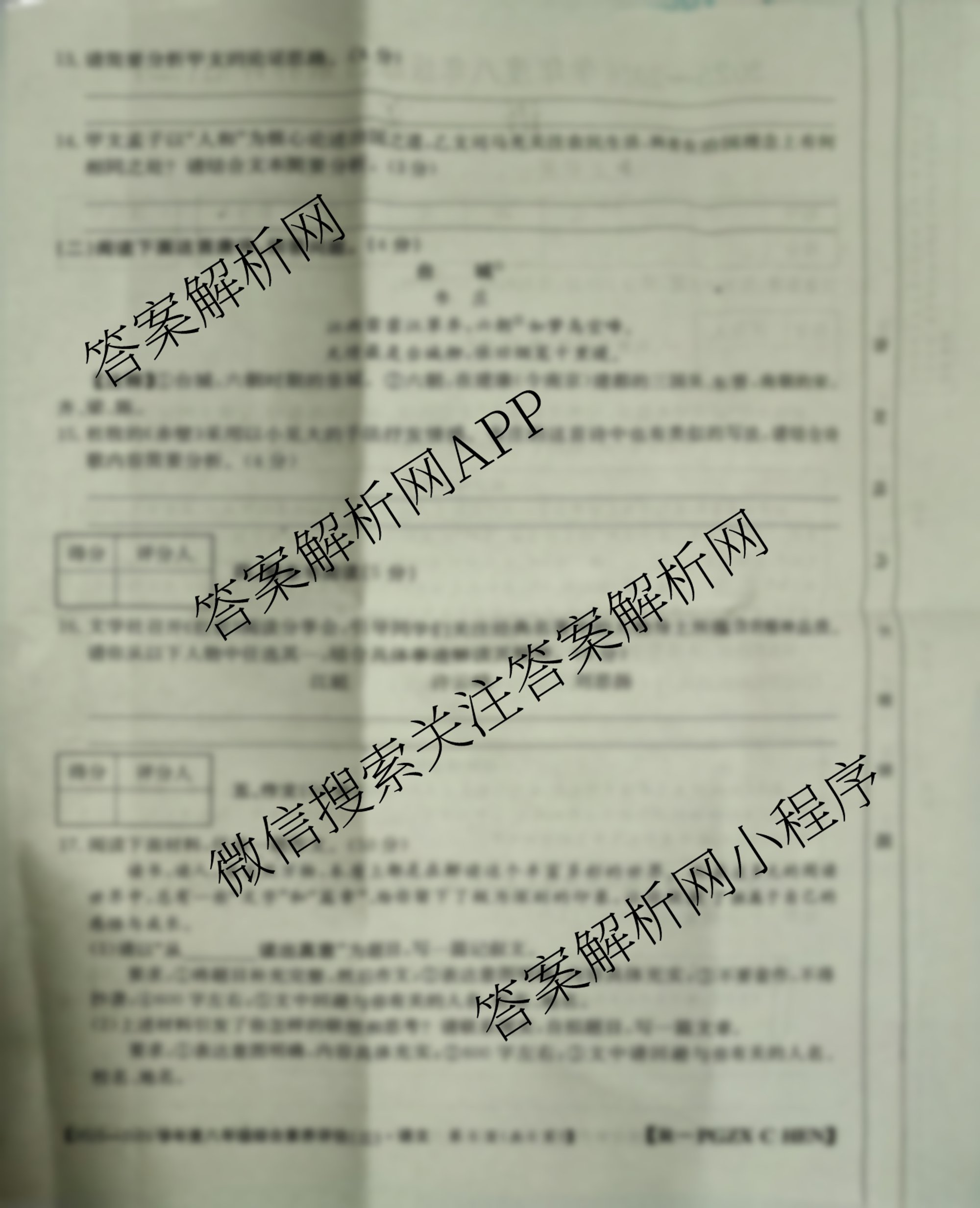 - 2025-2026(八年级)河南省学年度综合素养评估(三)[PGZX·C·HEN]语文(R)答案