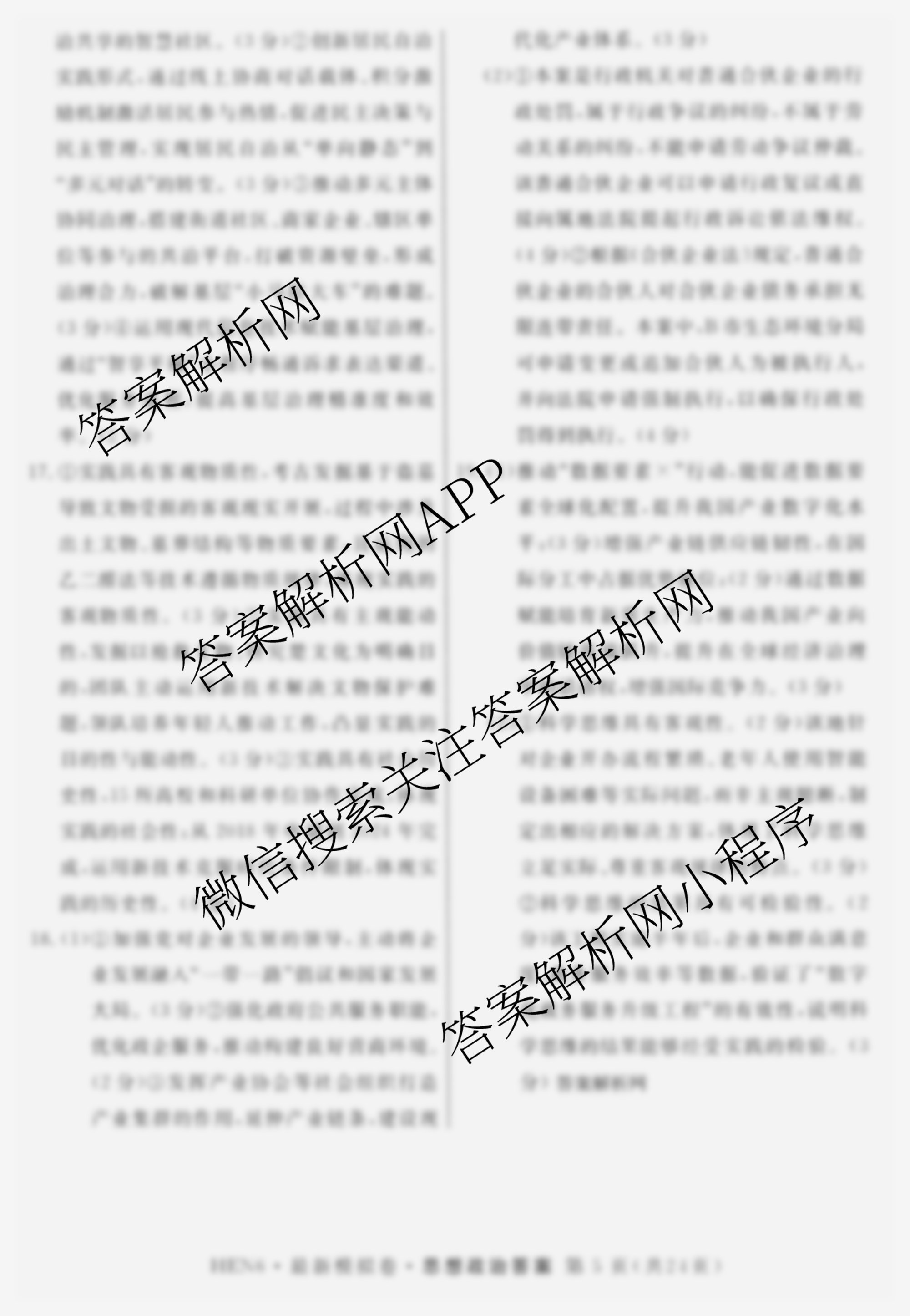 - [高三]2026年普通高等学校招生统一考试·最新模拟卷(一)1政治(HEN6)答案