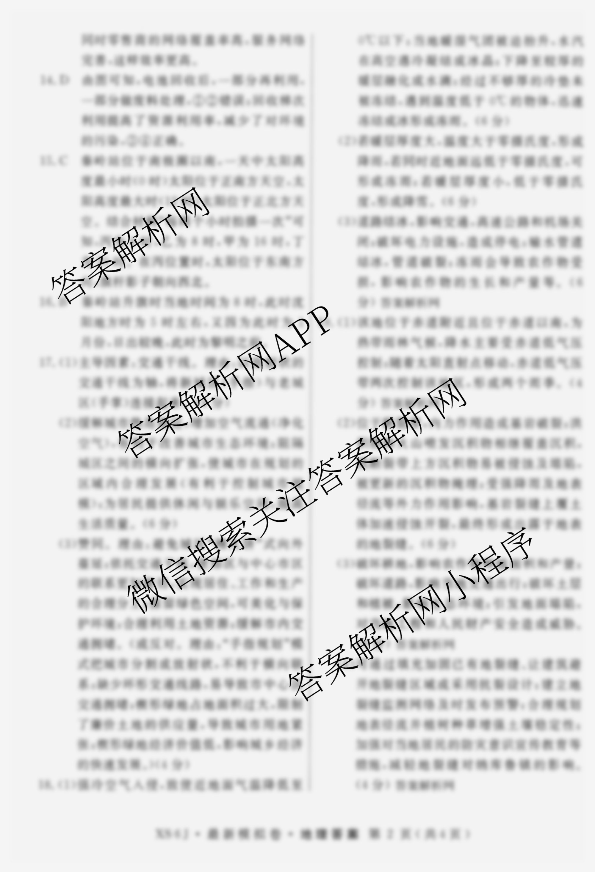 - 2026年普通高等学校招生统一考试·最新模拟卷(七)7地理(XS6J)答案