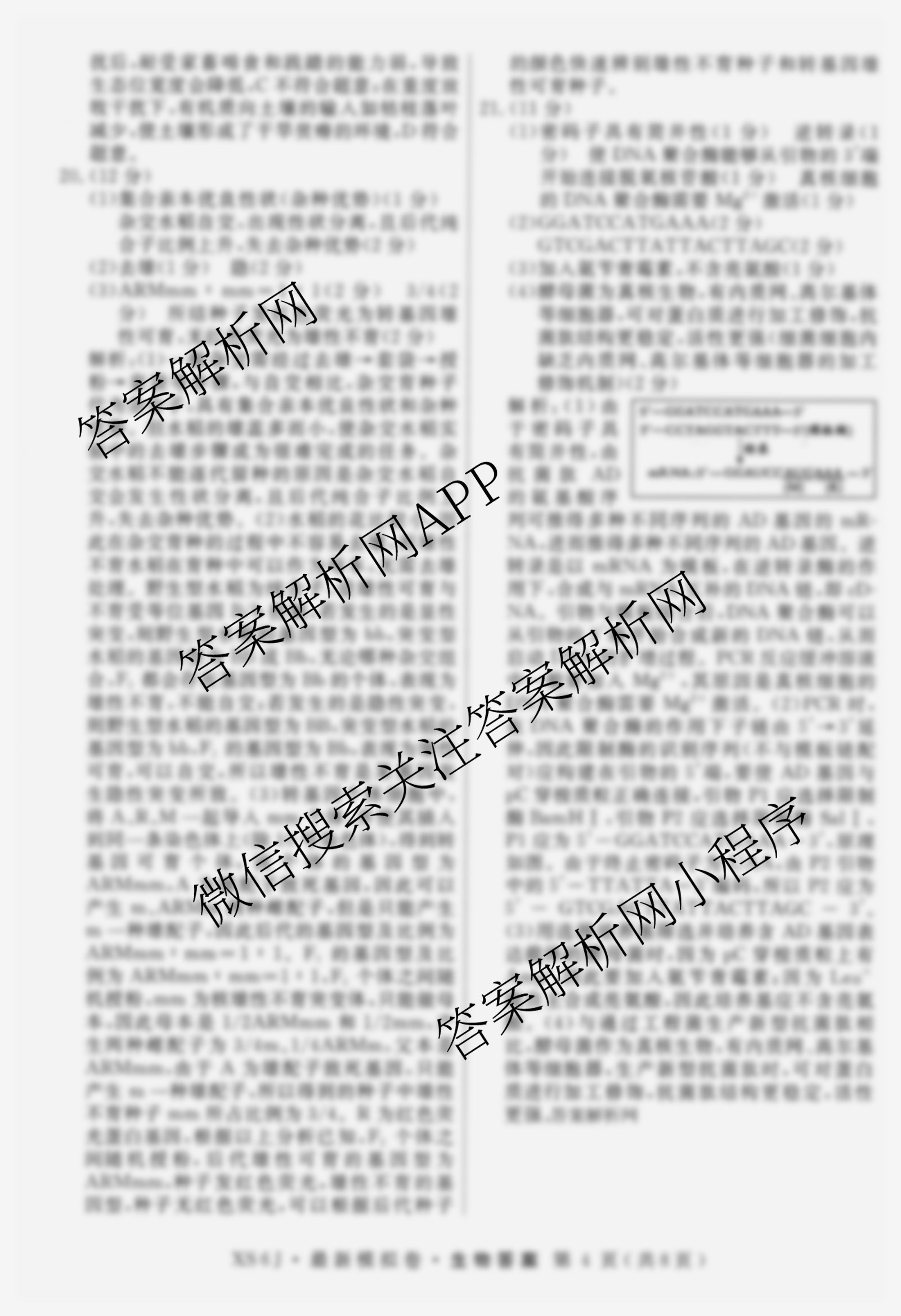 - [高三]2026年普通高等学校招生统一考试·最新模拟卷(七)7生物(JX6)答案