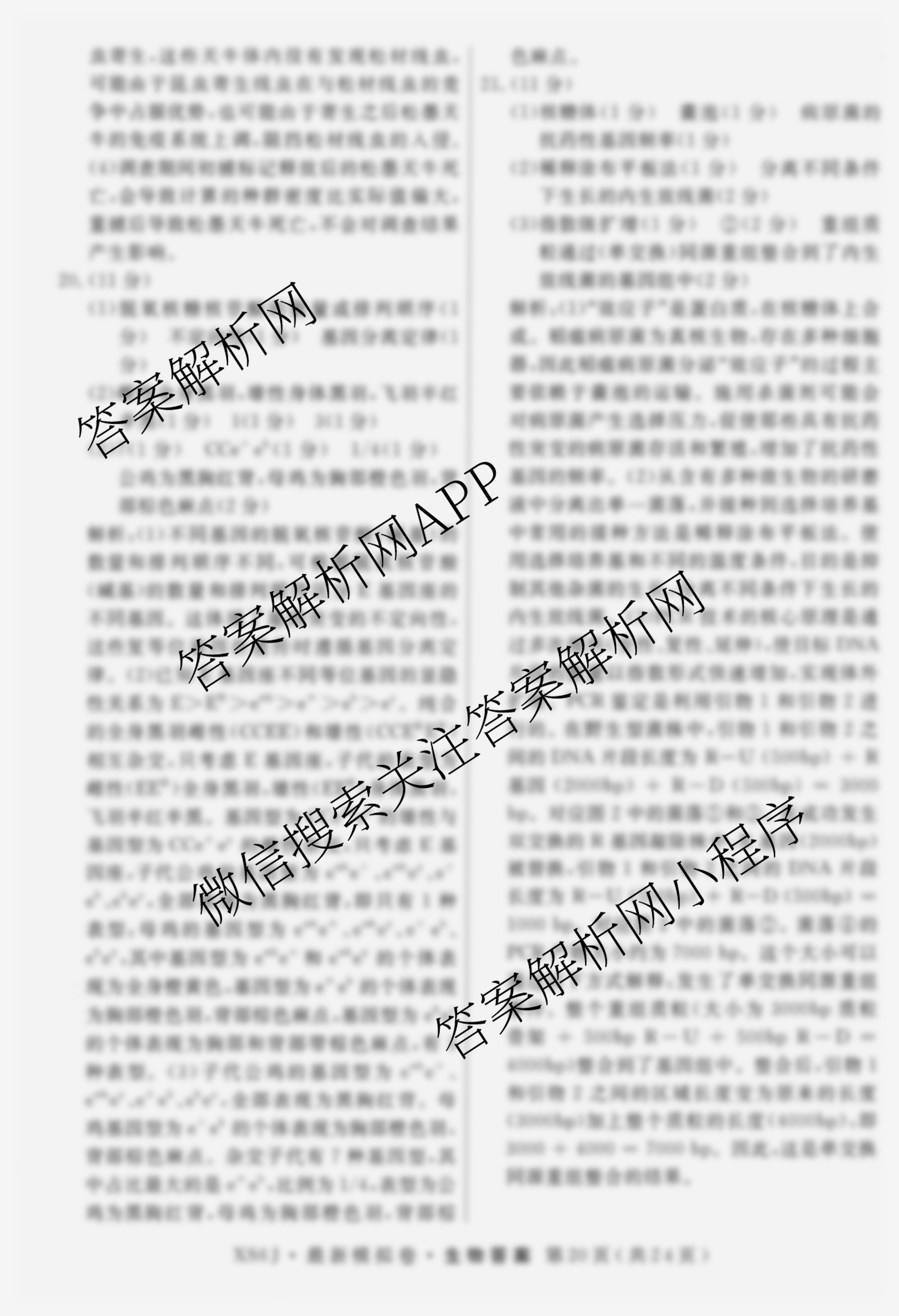- [高三]2026年普通高等学校招生统一考试·最新模拟卷(五)5生物(XS6J)答案