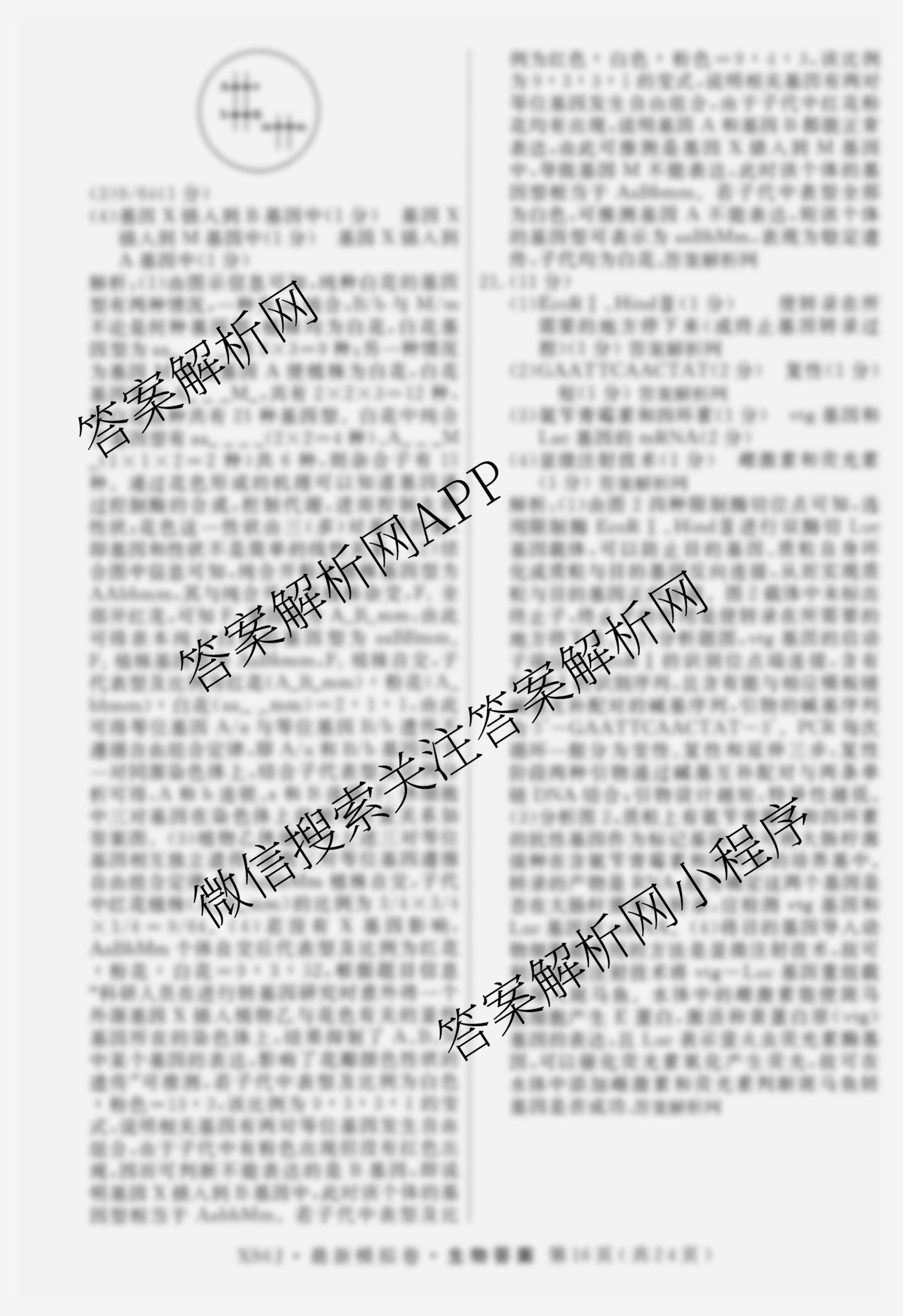 - [高三]2026年普通高等学校招生统一考试·最新模拟卷(四)4生物(XS6J)答案