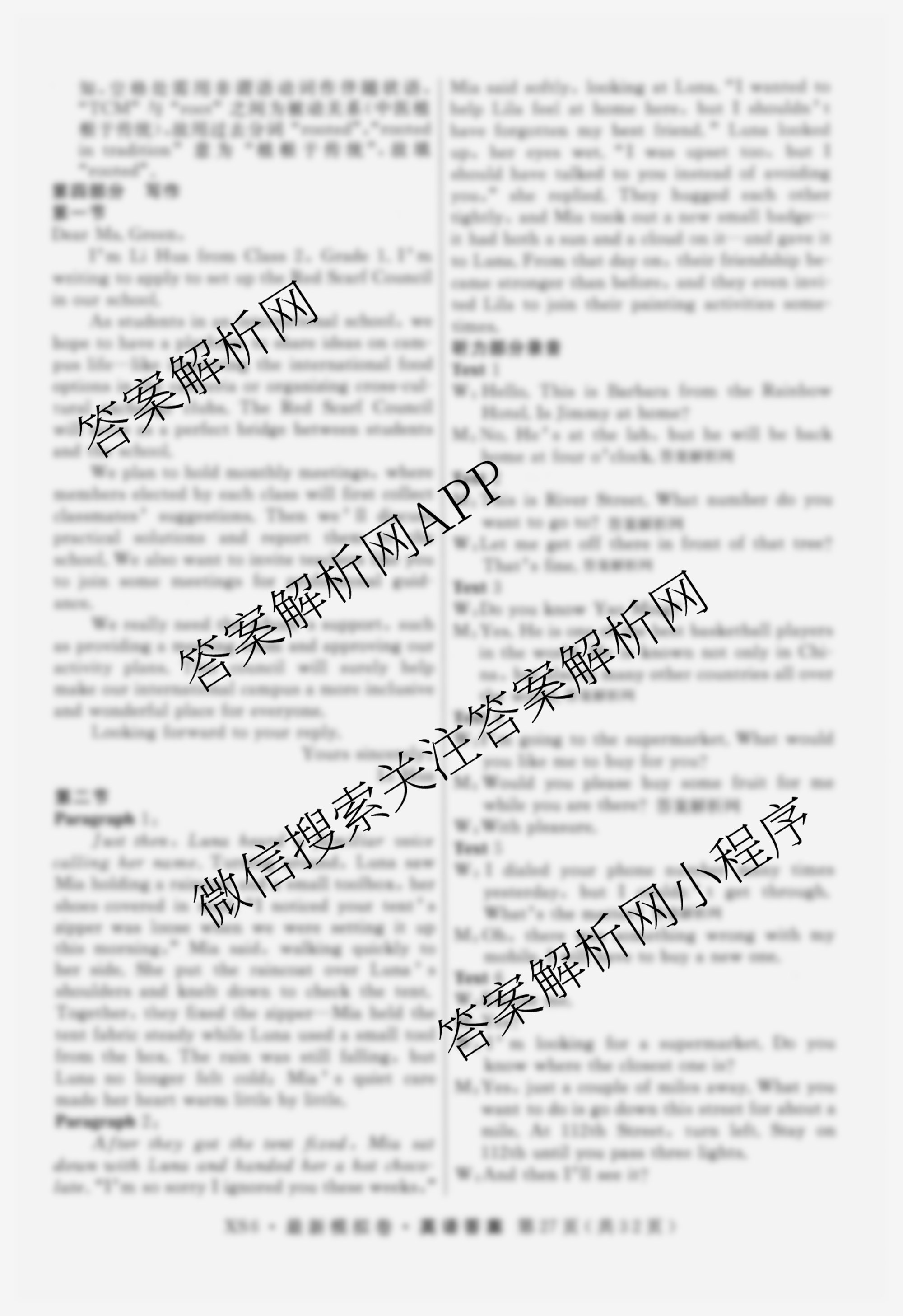 - 2026年普通高等学校招生统一考试·最新模拟卷(五)5英语(XS6)答案