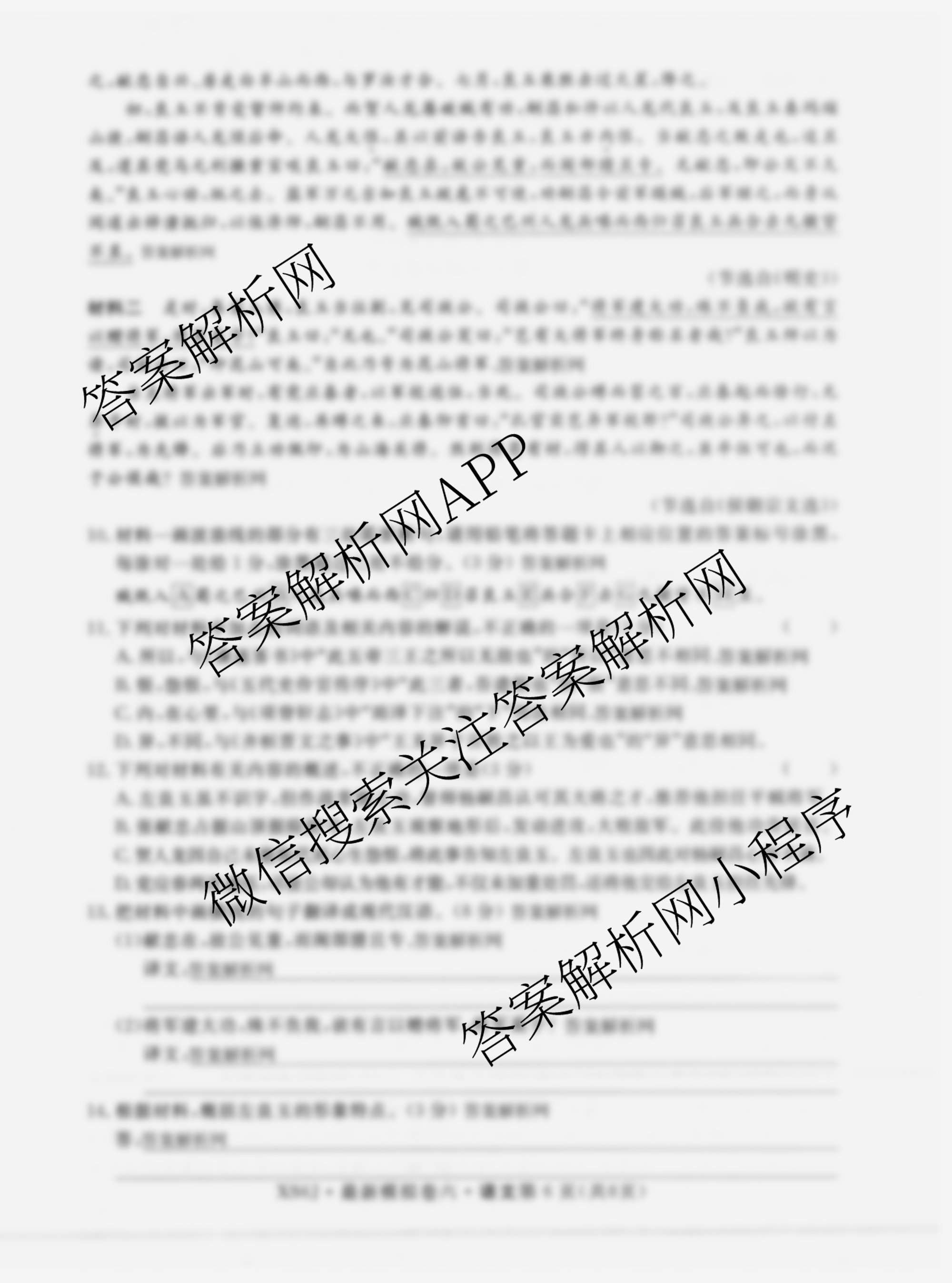 - 2026年普通高等学校招生统一考试最新模拟卷(六)6语文(XS6G)答案
