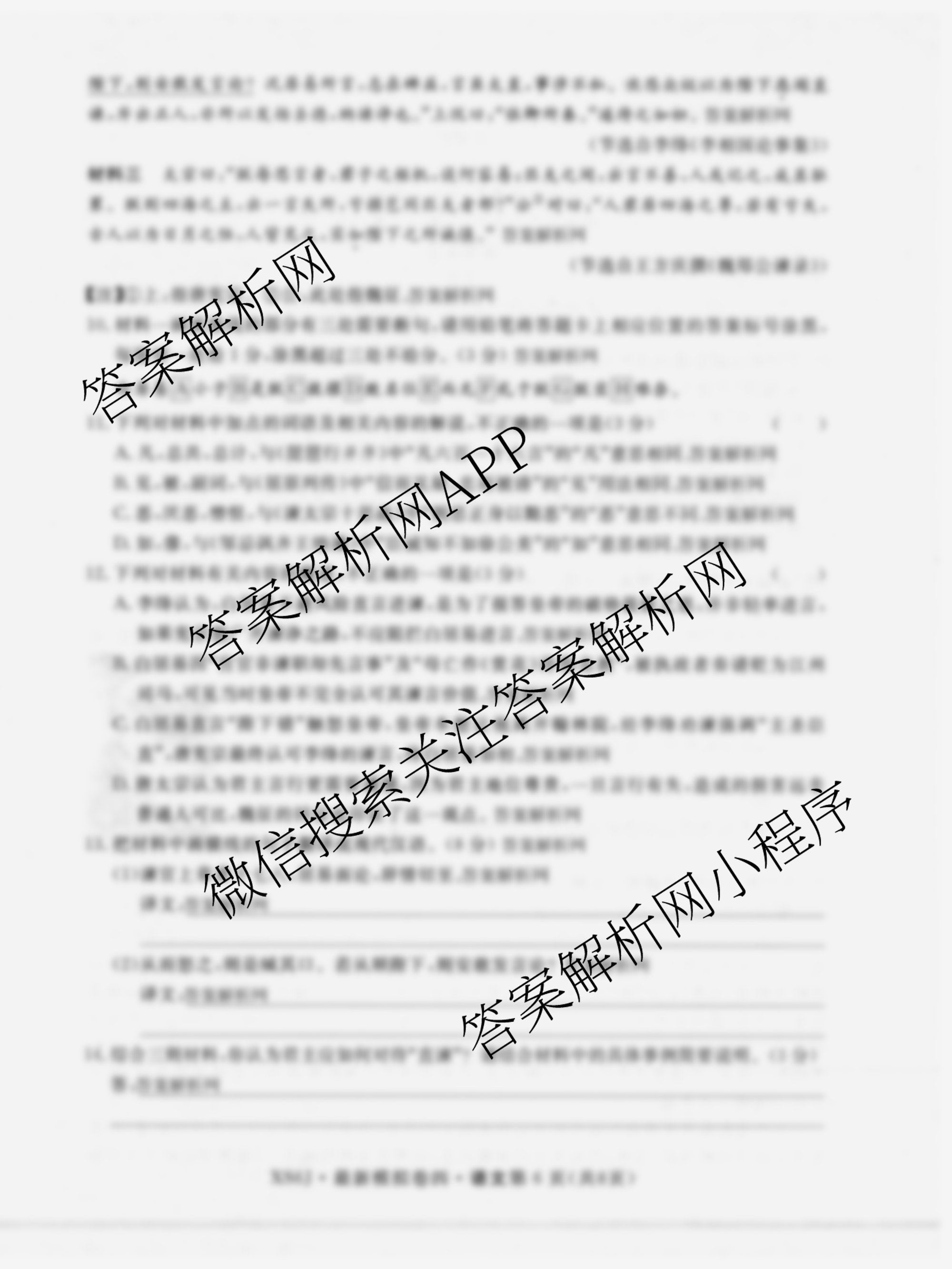- [高三]2026年普通高等学校招生统一考试·最新模拟卷(四)4语文(XS6J)答案