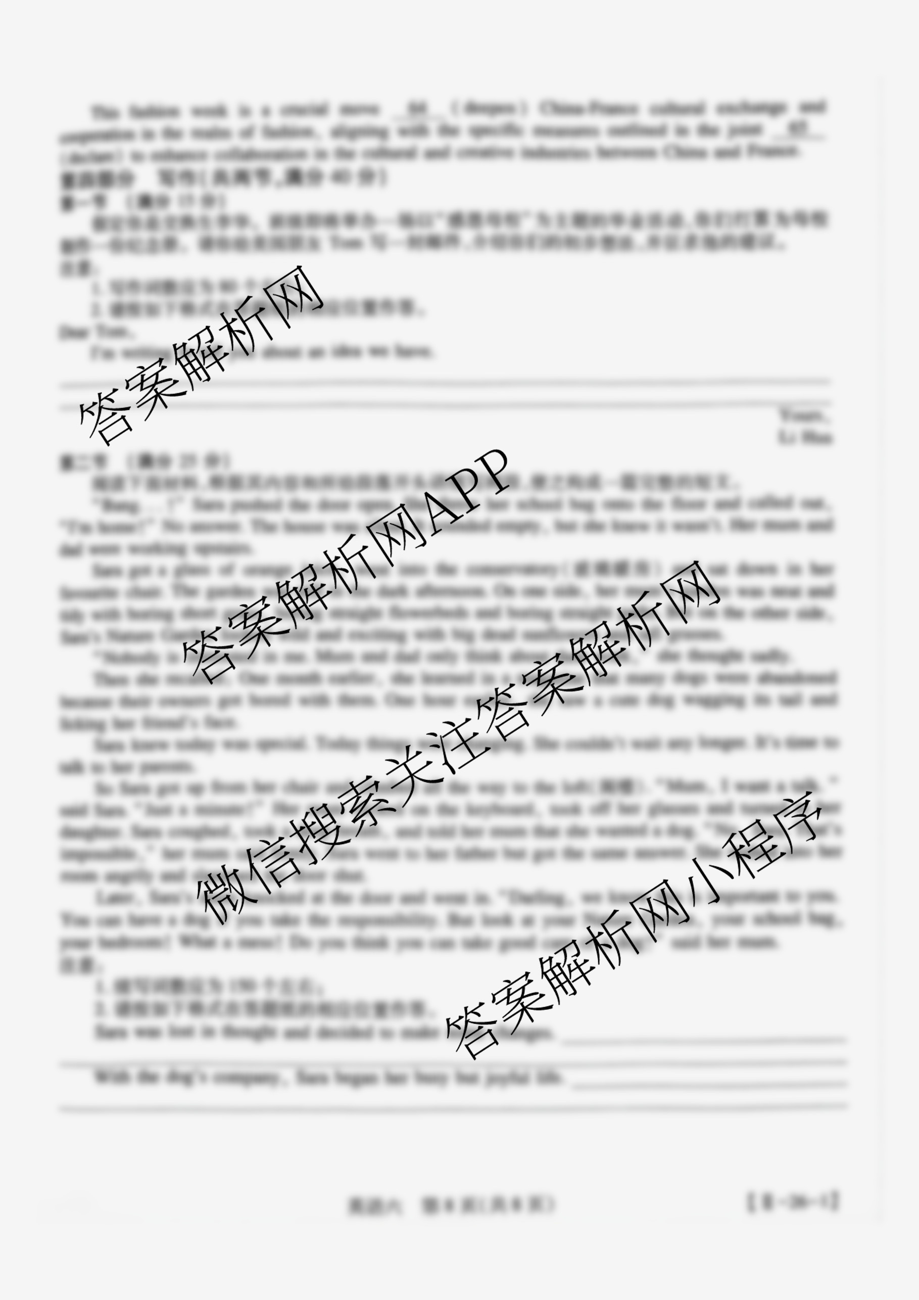 - 2026届(智慧上进)[高三]总复习双向达标月考调研卷(六)6英语(II)答案