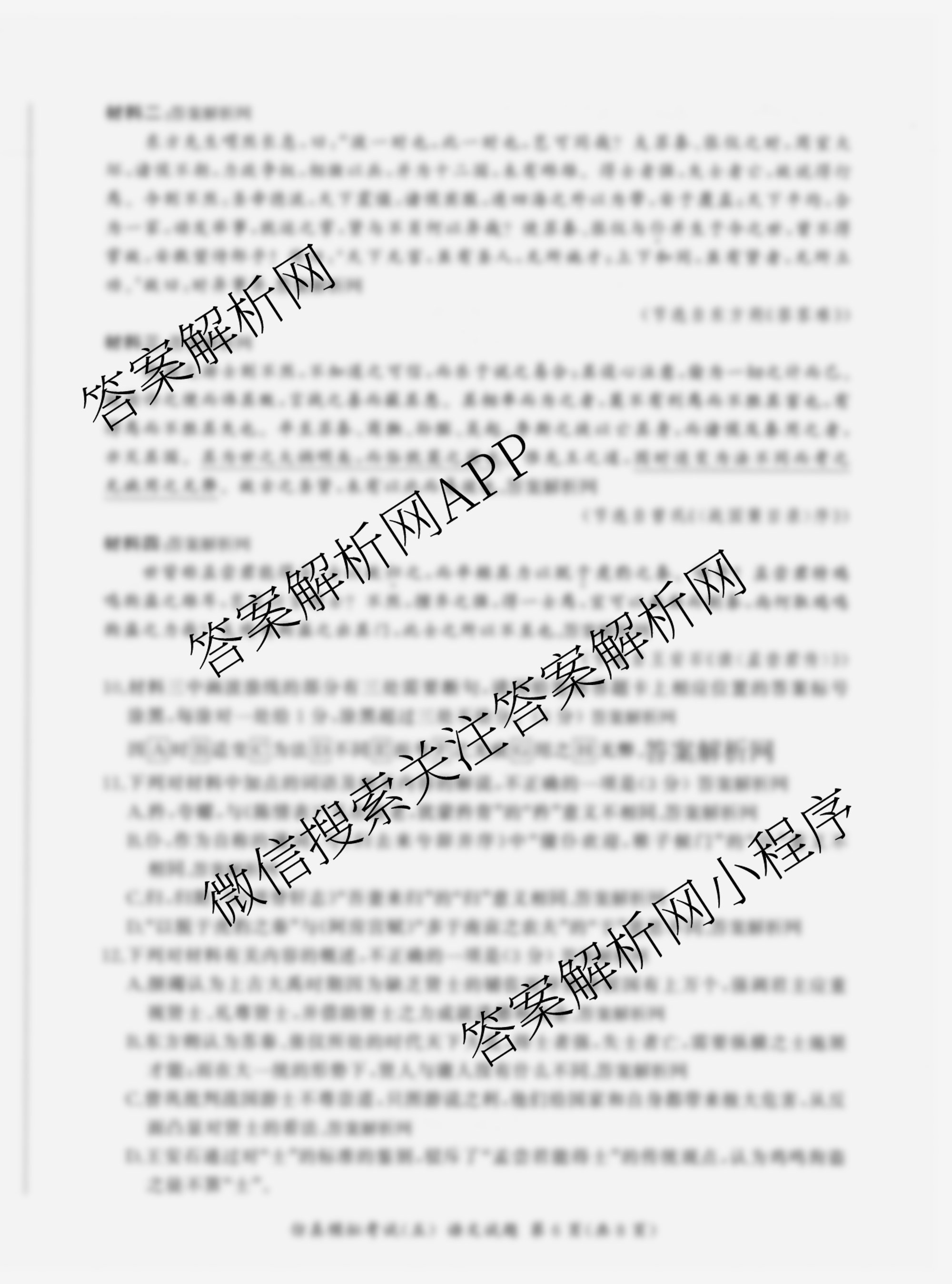 - 2026届(高三)(百师联盟)·仿真模拟考试(五)5语文答案